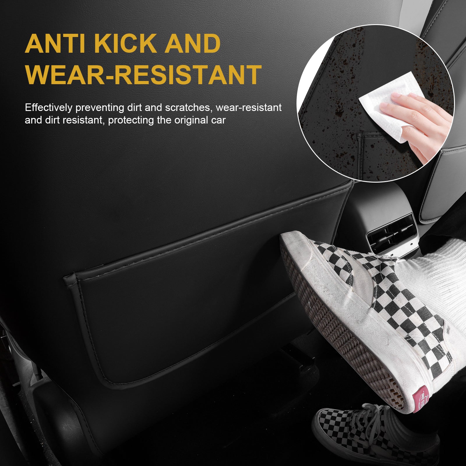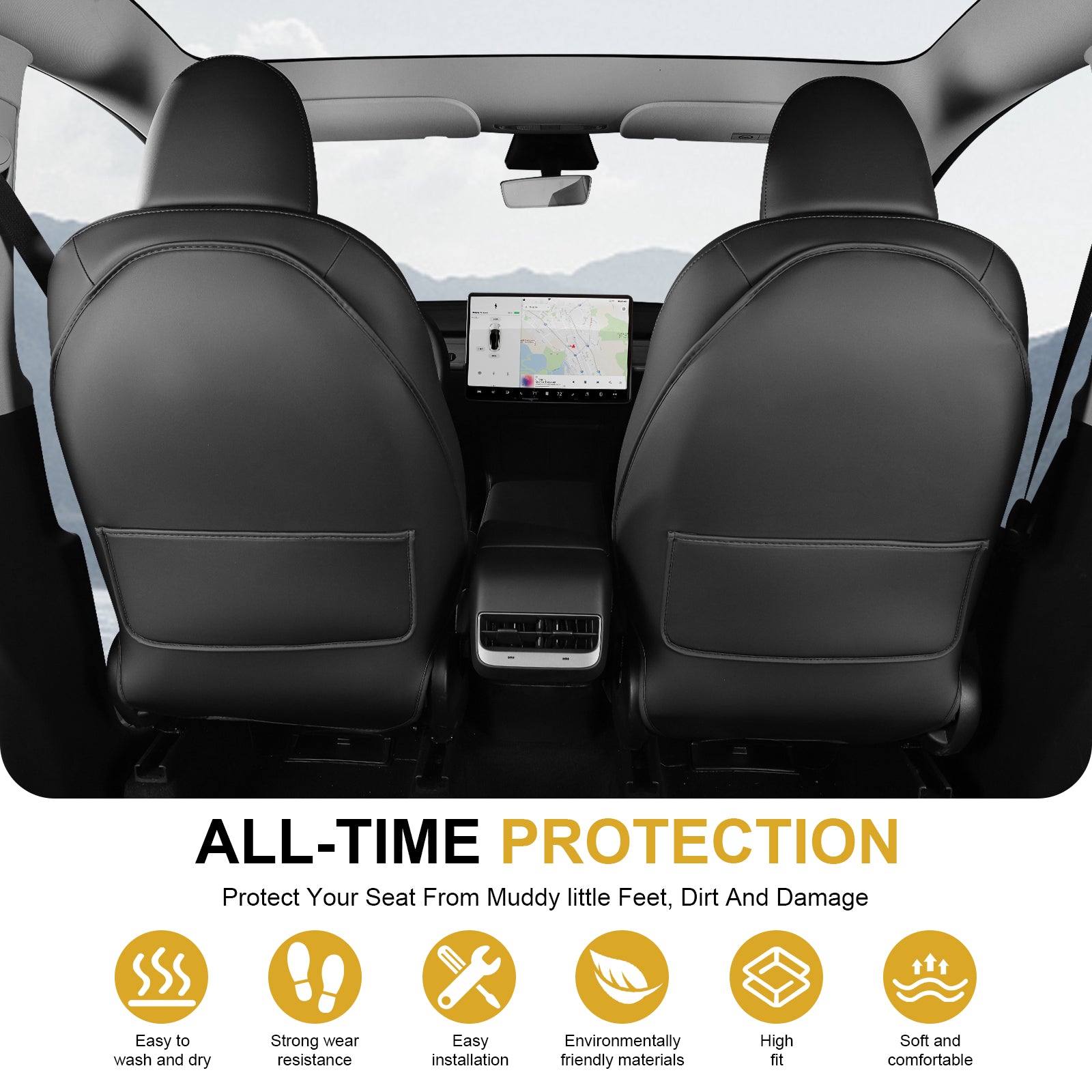 - Premium Quality Leather Material: The model 3 Y seat back kick mats is made of high-quality PU leather, waterproof, dirt-resistance, mud-resistance, scratches-resistance and easy to clean.
