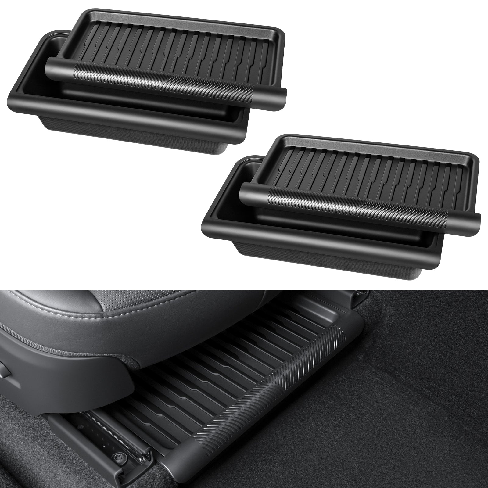 2PCS 2025-2026 Model Y Juniper Under Seat Storage Box,Hidden Organizer Tray Underseat Bins with Lid Cover
