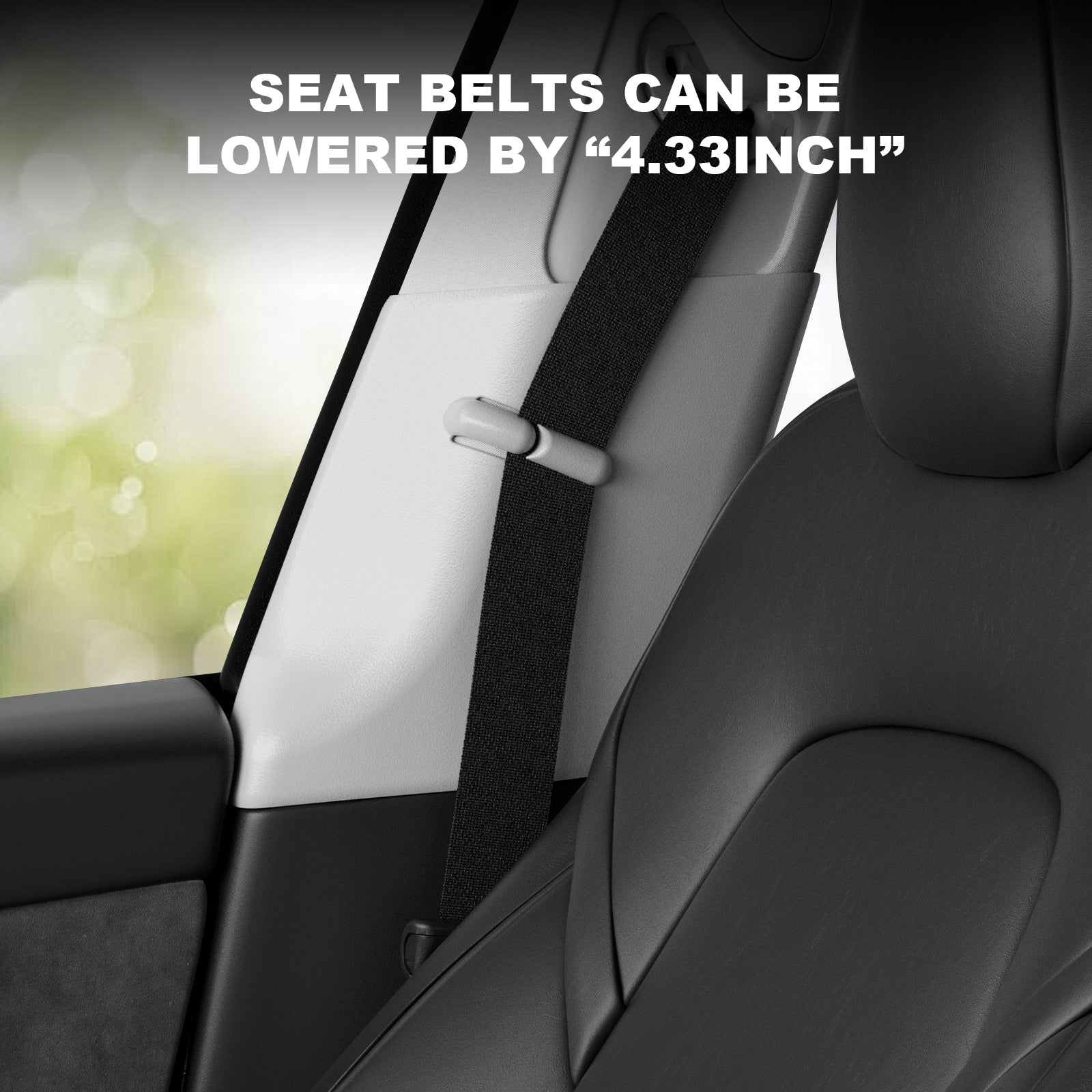 - Comfort and Safety: Model Y Seat Belt Adjuster is designed to keep the belt away from your neck, face and chest,keeping the seatbelt from cutting across your neck,bring a comfortable and safe driving.