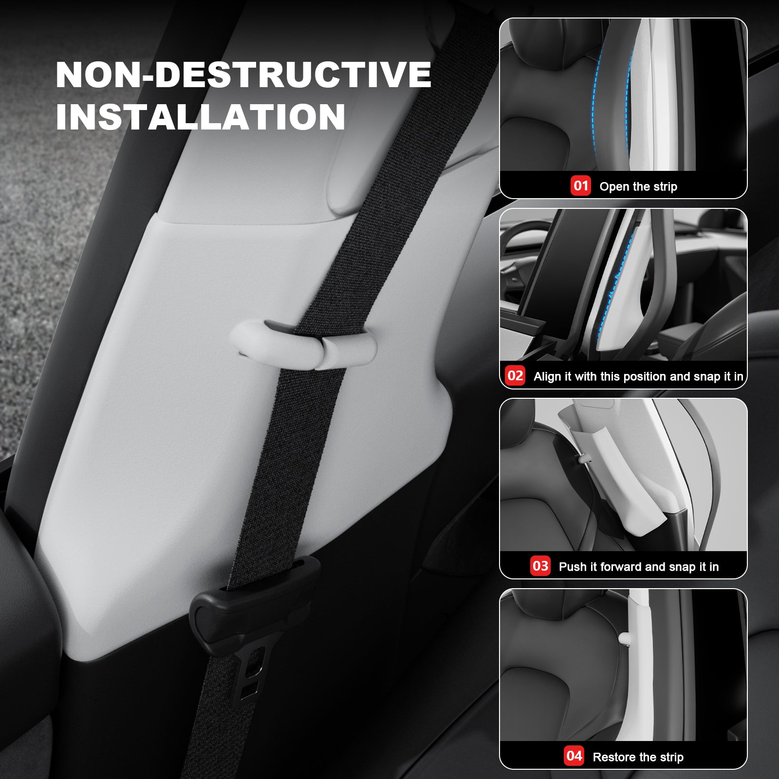 - Easy Installation: The Tesla seat belt adjuster is easy and convenient to install, no tools required. It won't scratch your car paint.