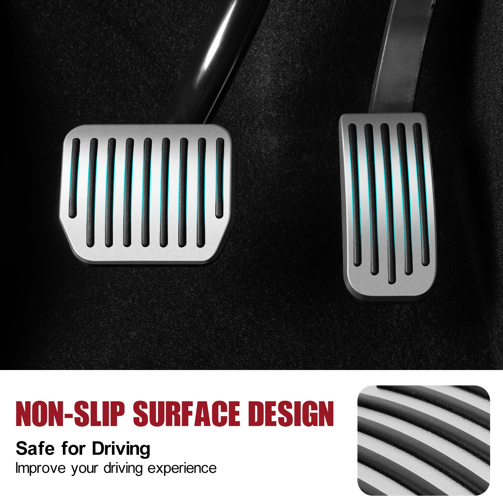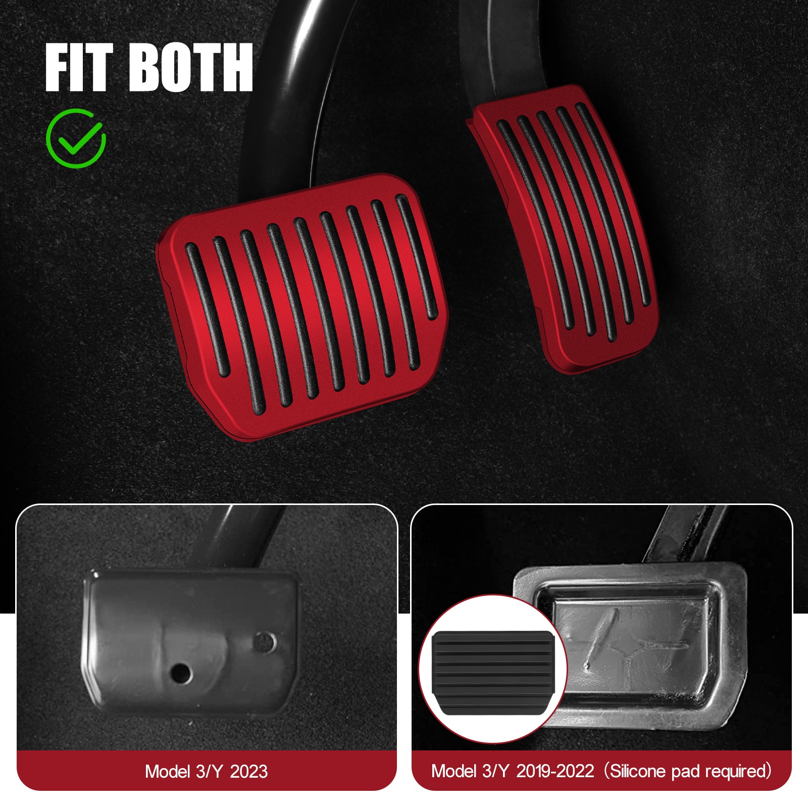 - The foot pedals pads set is perfect compatible with 2023 or 2019-2022 Tesla Model 3 and Model Y. No matter how you step on it, it will not move and fall off.