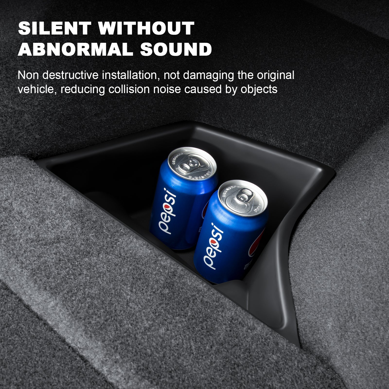 【Customized Design】 This side trunk organizer is specifically designed to fit perfectly in the trunk of 2024-2025 Tesla Model 3 Highland, ensuring a seamless integration with the vehicle,the matching lids prevent items from rolling down deep grooves.