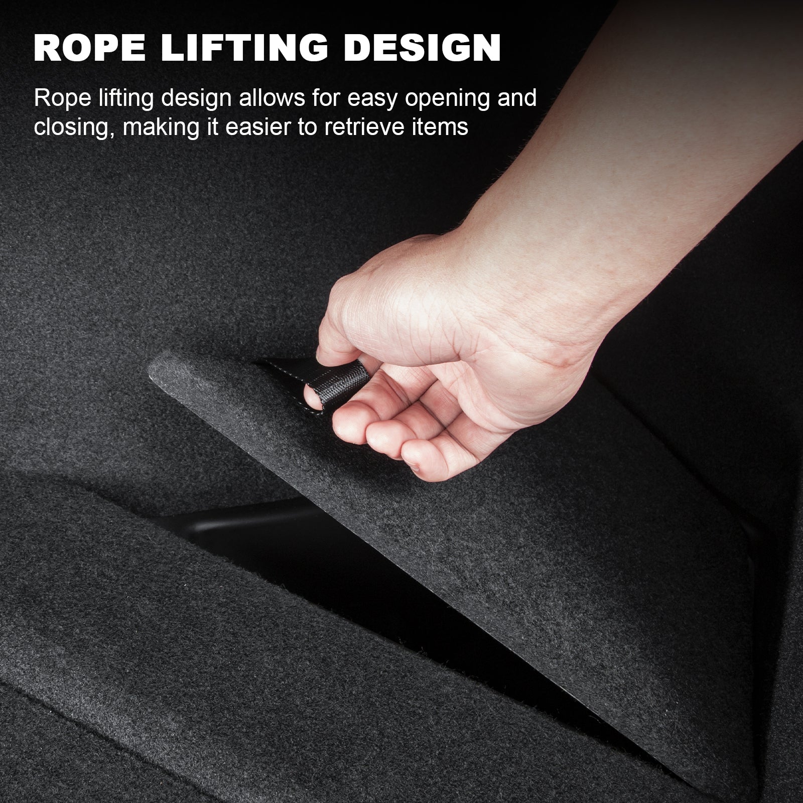 【High Quality Materials】The Tesla 3 trunk side storage box is made of a soft TPE material that is durable and waterproof and has a flocked cover plate with reinforced handles that matches the interior perfectly.