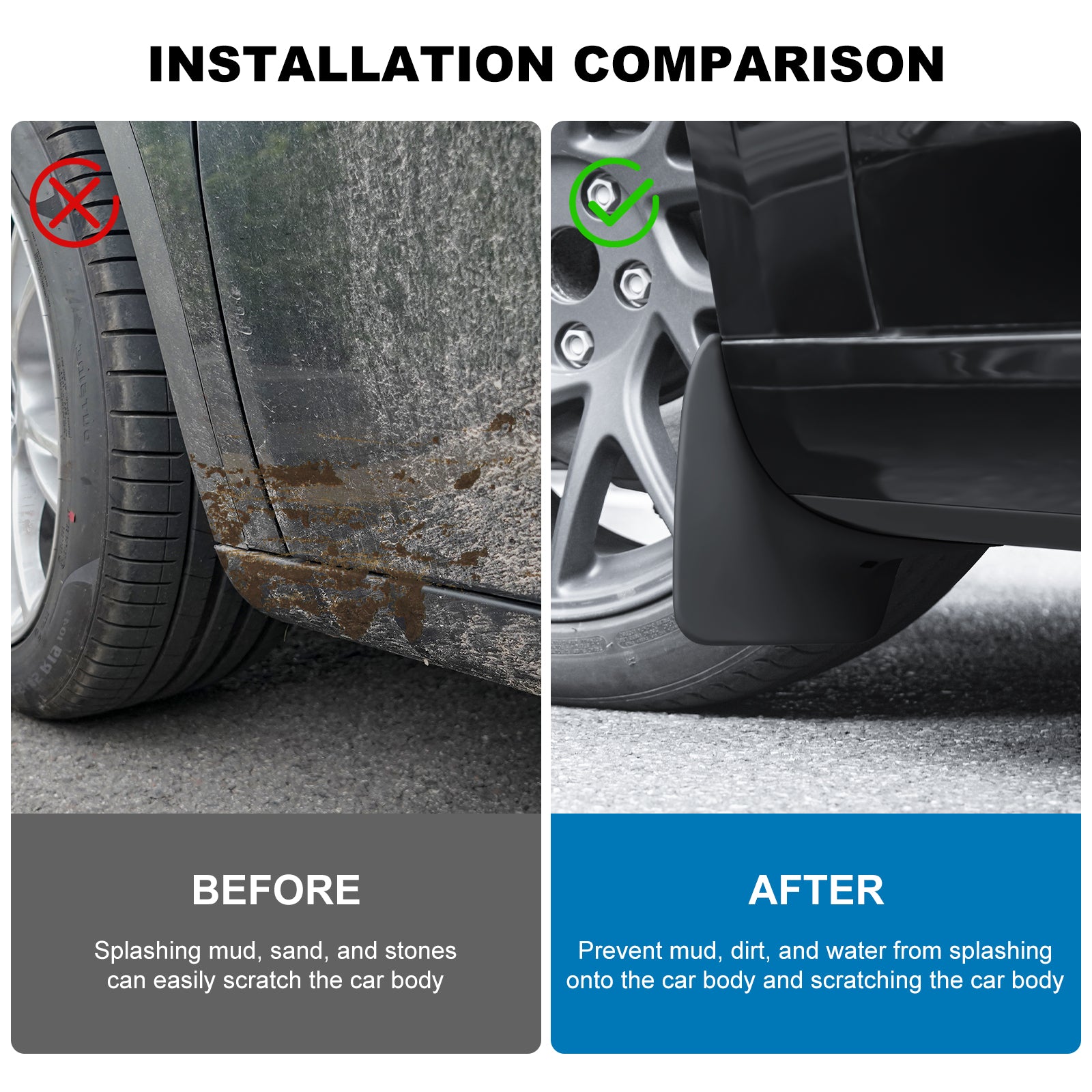 Excellent Performance: Model 3 mud flap ensure safe operation even in the harshest environments, protecting your car from mud, dust, snow, ice, gravel and road erosion. It not only reduces the number of car washes and paint jobs, but also improves driving safety.