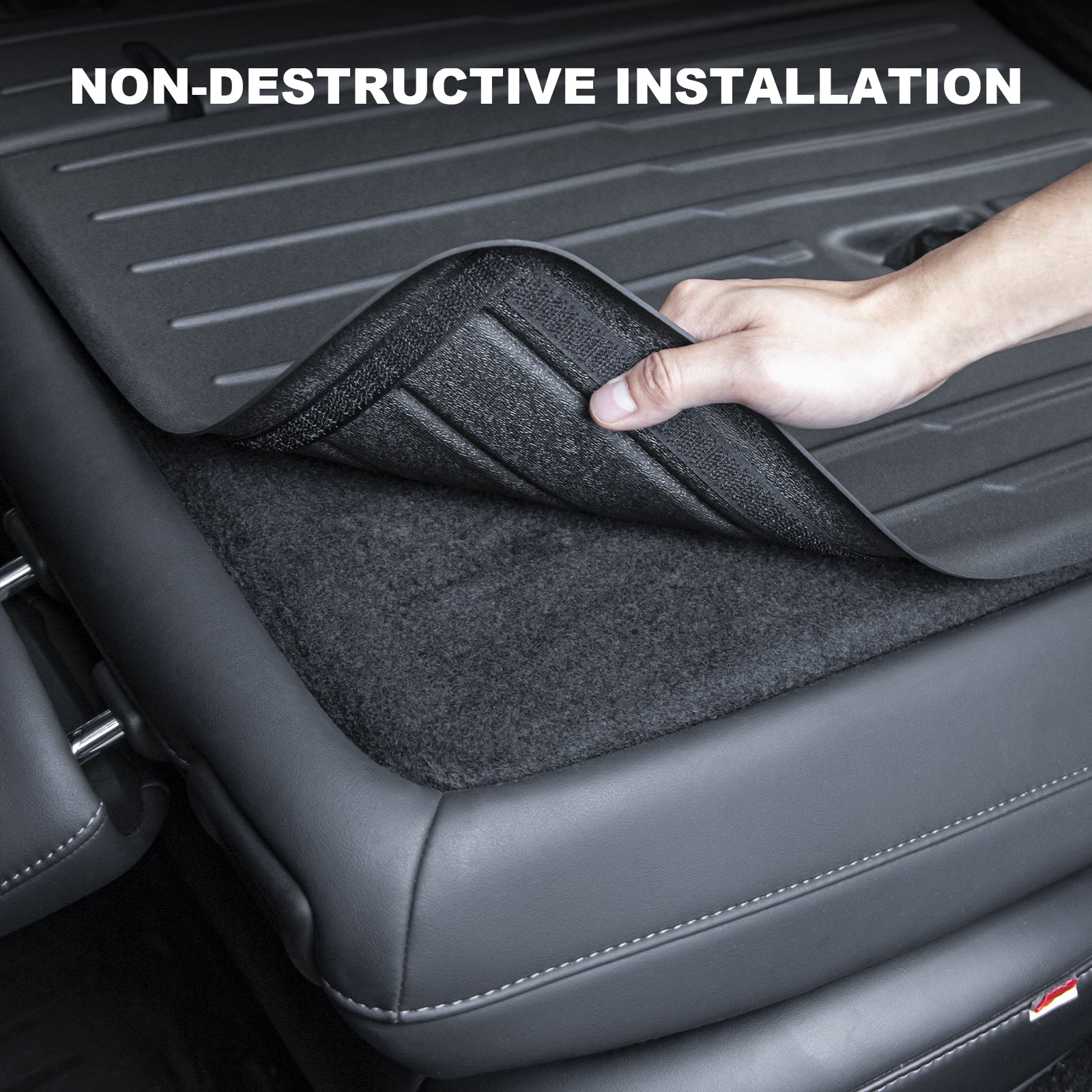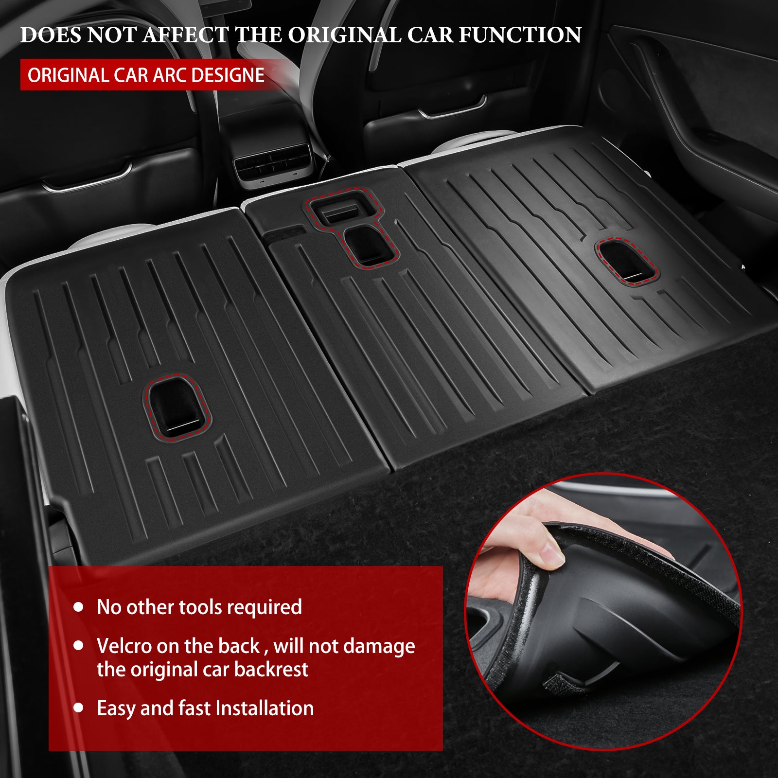 - This model Y rear seat backrest protector cover is easy to install and clean, the back velcro non-destructive installation. Just stick the backrest to the back of the rear seat, stable and reliable. Installation and removal process will not damage your car.
