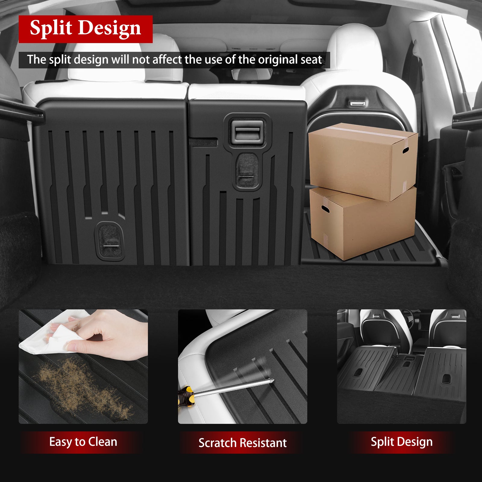 - The model Y rear seat backrest is made of true high-quality TPE material, with good flexibility and thermoplasticity, scratch-resistant, puncture prevention and abrasion-resistance, environmental protection, waterproof and easy to clean.