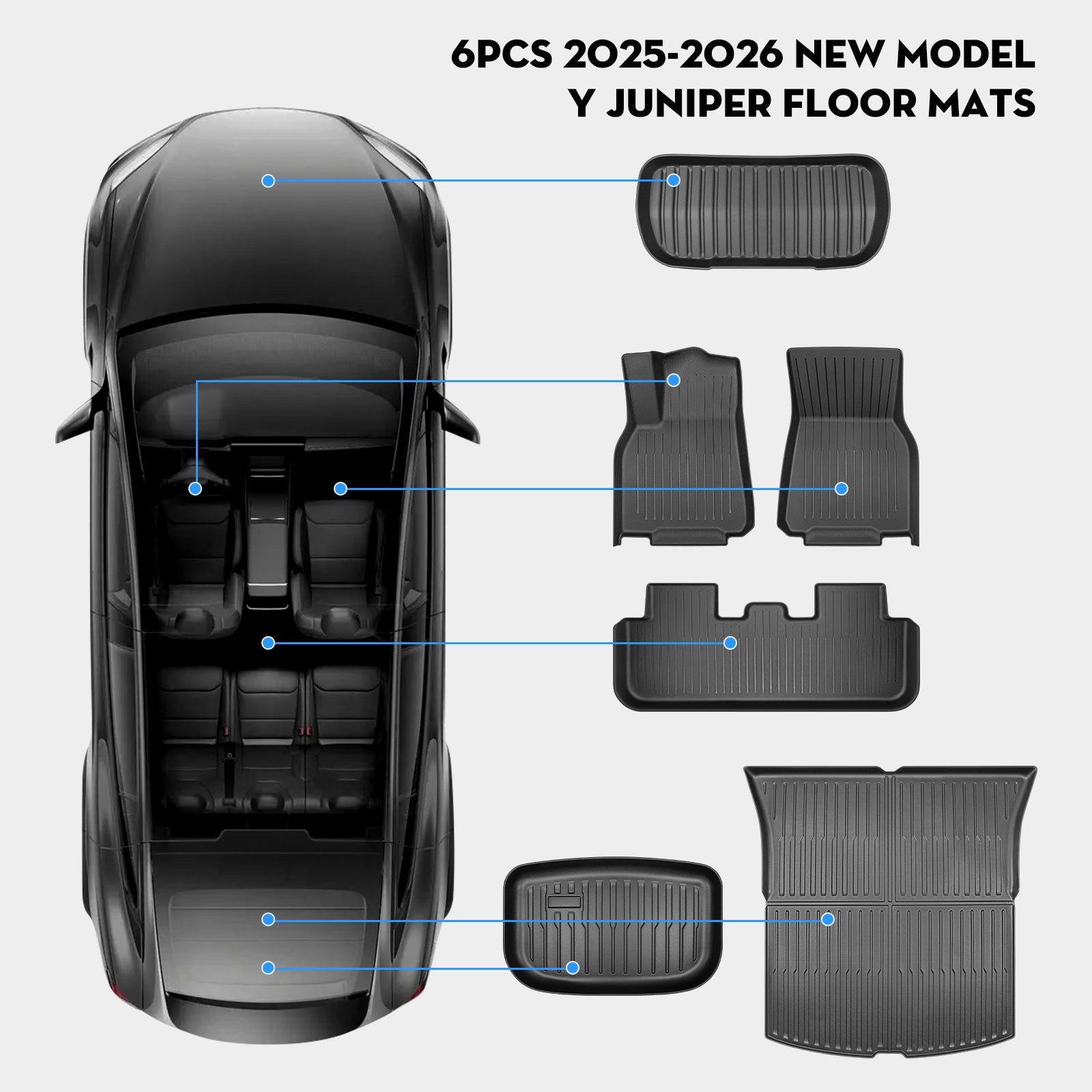 6PCS Floor Mats for Tesla New Model Y Juniper 2025-2026 5-Seater Accessories