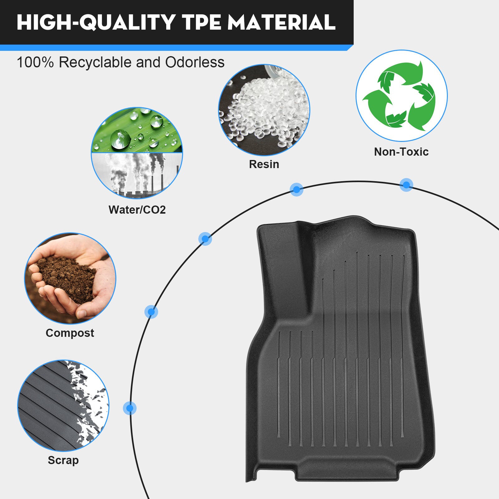 - Durable Environmental Material: Hight quality full TPE for long-time use. Waterproof, Safe and odorless, Scratch/dirt resistant, Durable Cargo area protection. Raised sides give extra protection from spills and wet items.