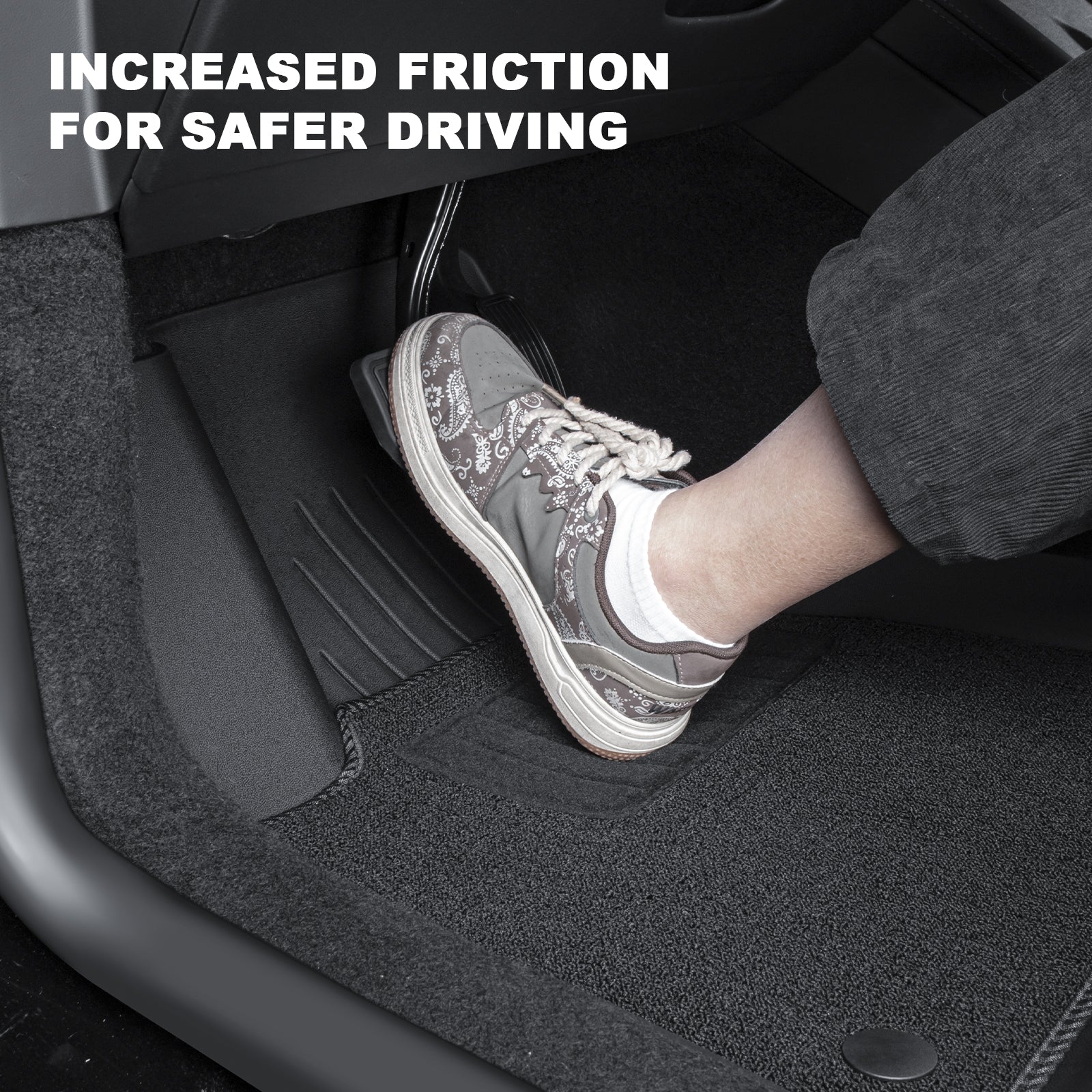 - The mats are easy to install and remove with a simple placement, and the full-coverage non-slip spikes on the bottom prevent the mats from sliding and interfering with the brake and gas pedals, ensuring safer driving.