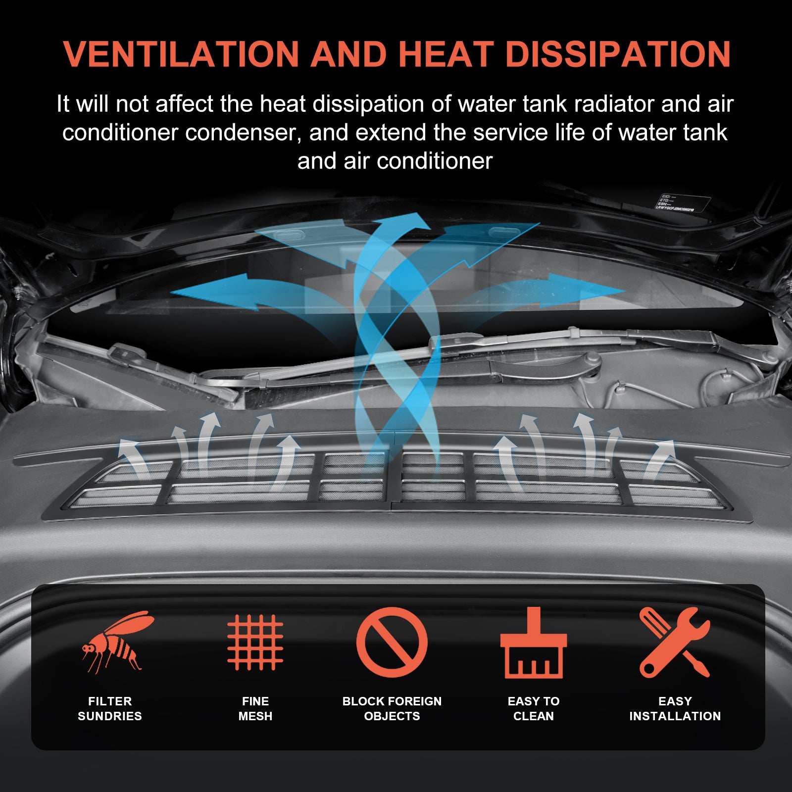 【Custom Fit】Compatible with Latest 2021 2022 2023 2024 2025 Tesla Model Y Left driving exterior accessories front trunk air inlet decoration cover air intake filter.