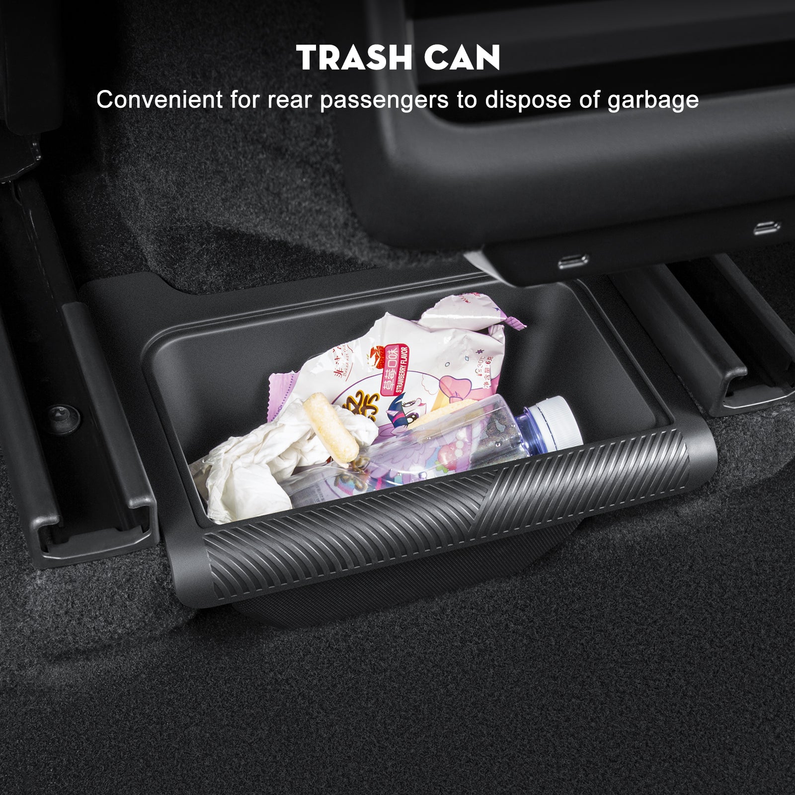 Backseat Trash Can Organizer TPE Storage Box with Anti-Slip Lid Cover Underseat Storage Tray for 2025-2026 Tesla Model Y Juniper Accessories