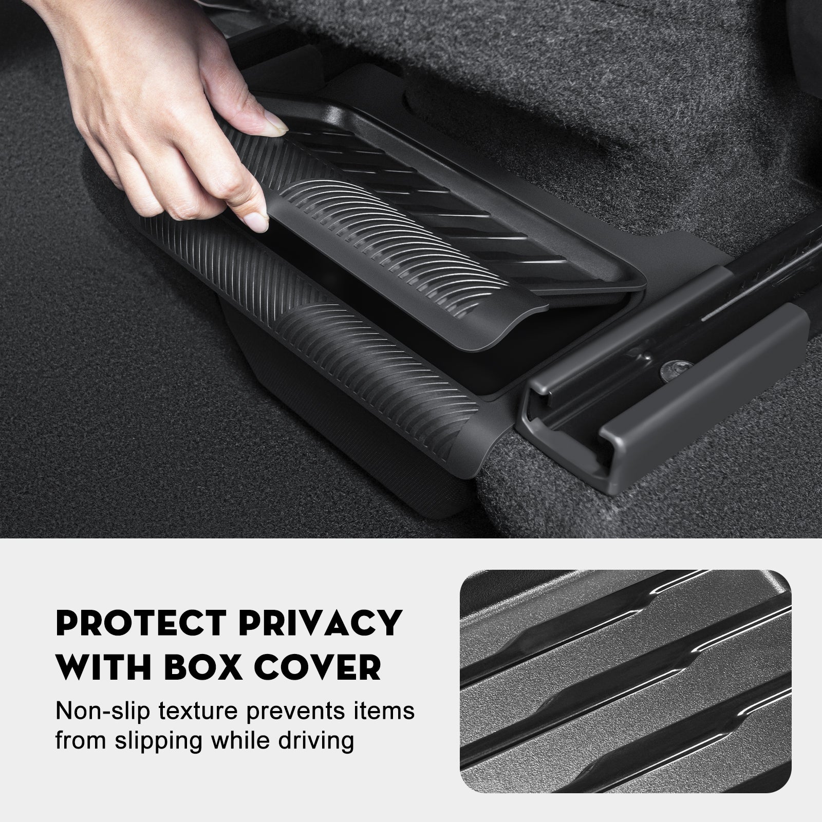 - Easy to Install: This Tesla Model Y Juniper Storage Box installs in 5 seconds without adhesives or Velcro. It stays securely in place even on bumpy roads and removes effortlessly.