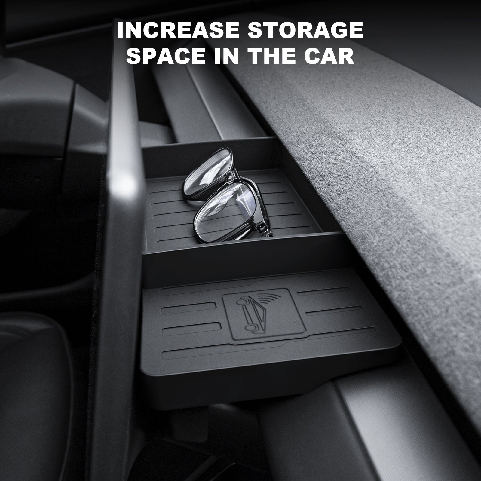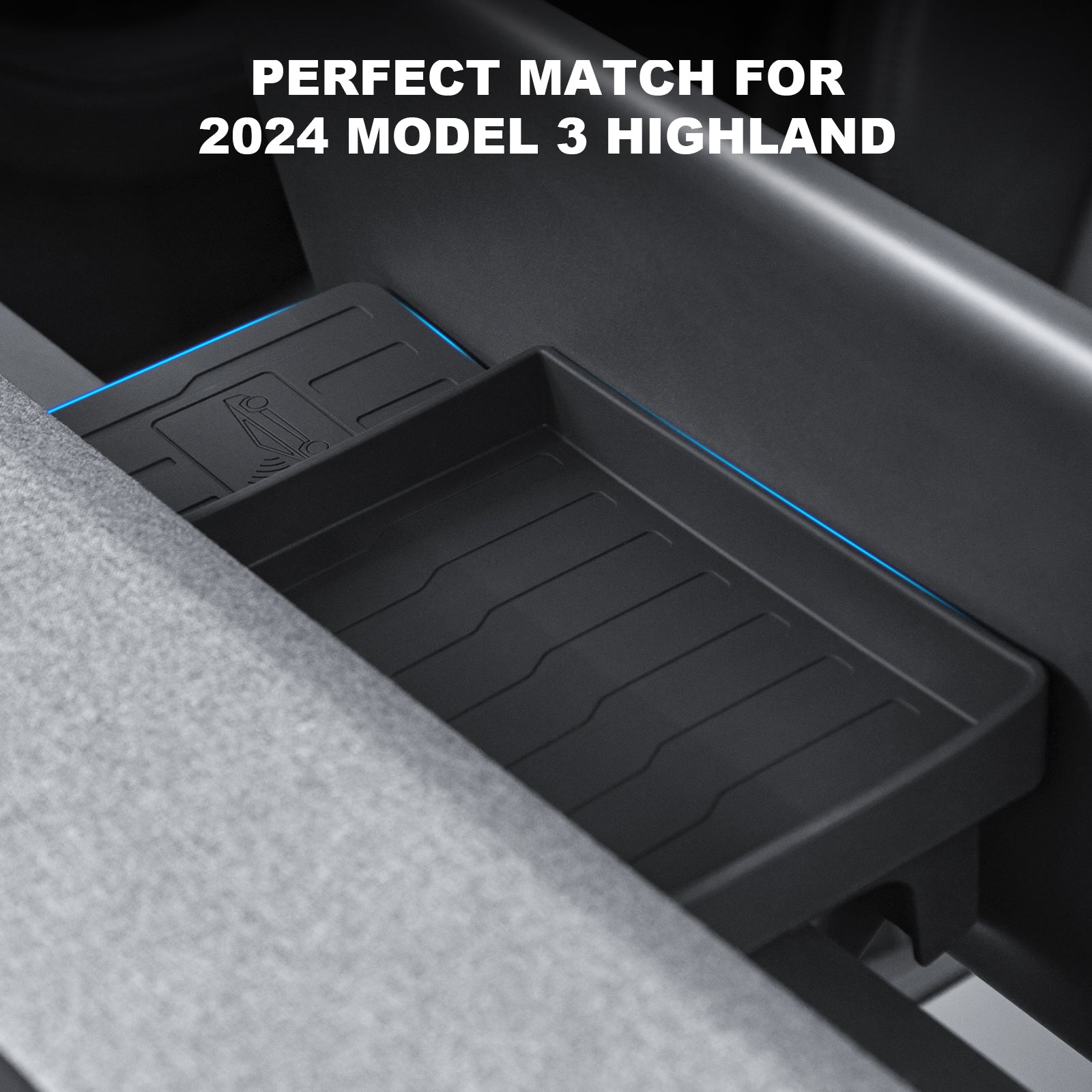 - Hidden Design: 2024-2025 Tesla Model 3 Screen central control Tray is a space-saving storage tray.It perfectly fits the size of the tissue box,and can also hold small objects such as watches,sunglasses,keys,etc.