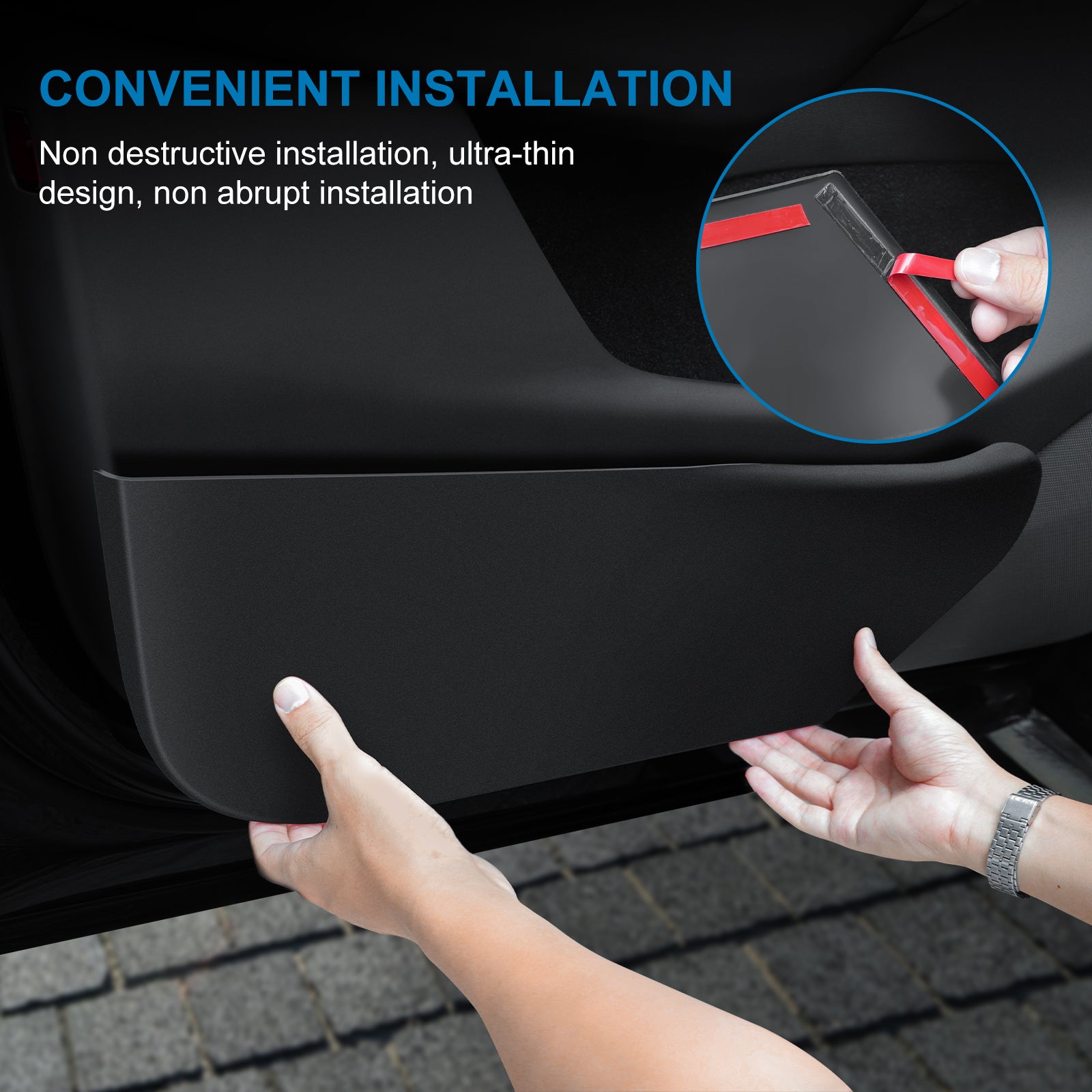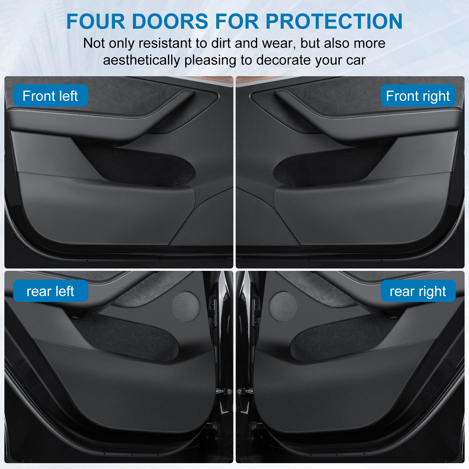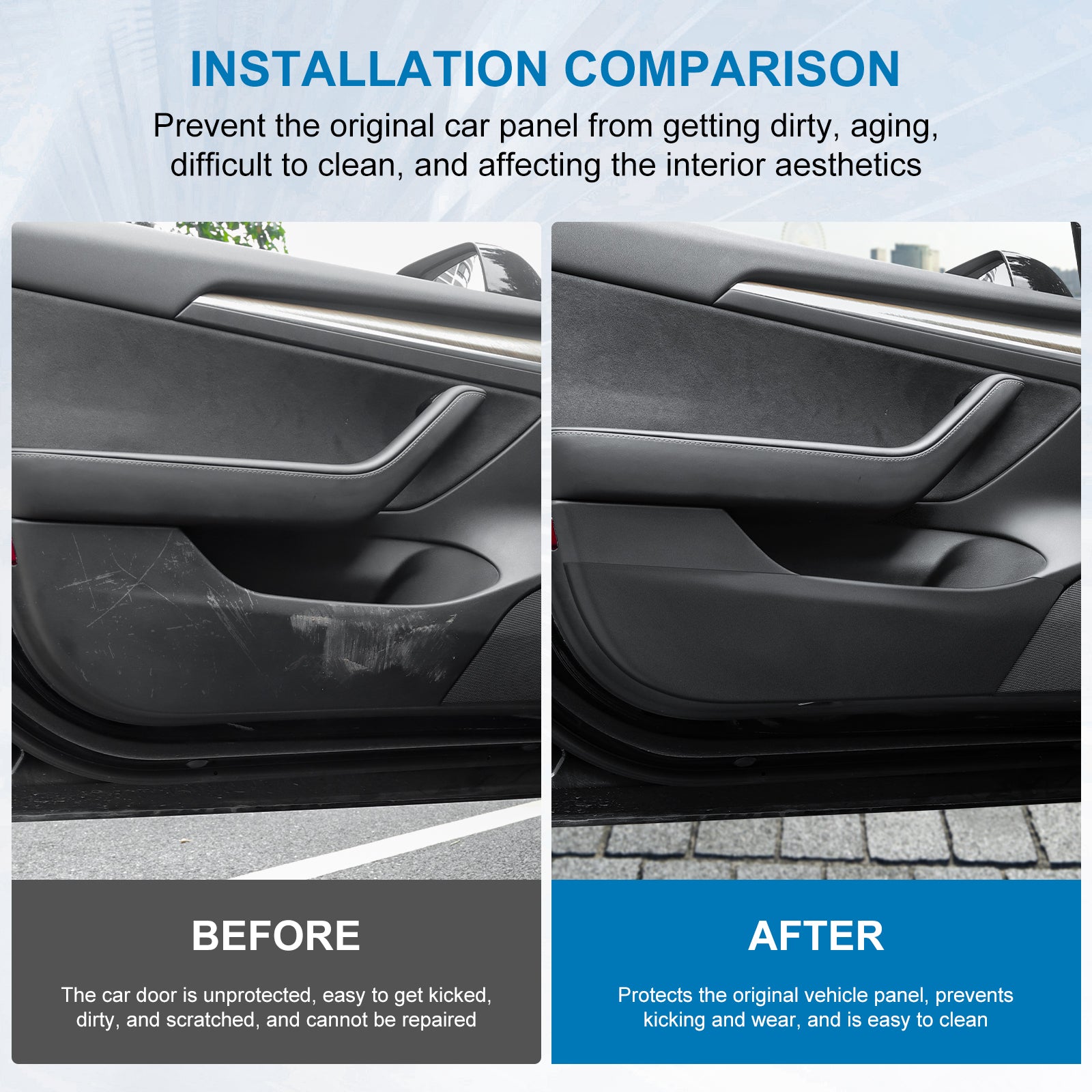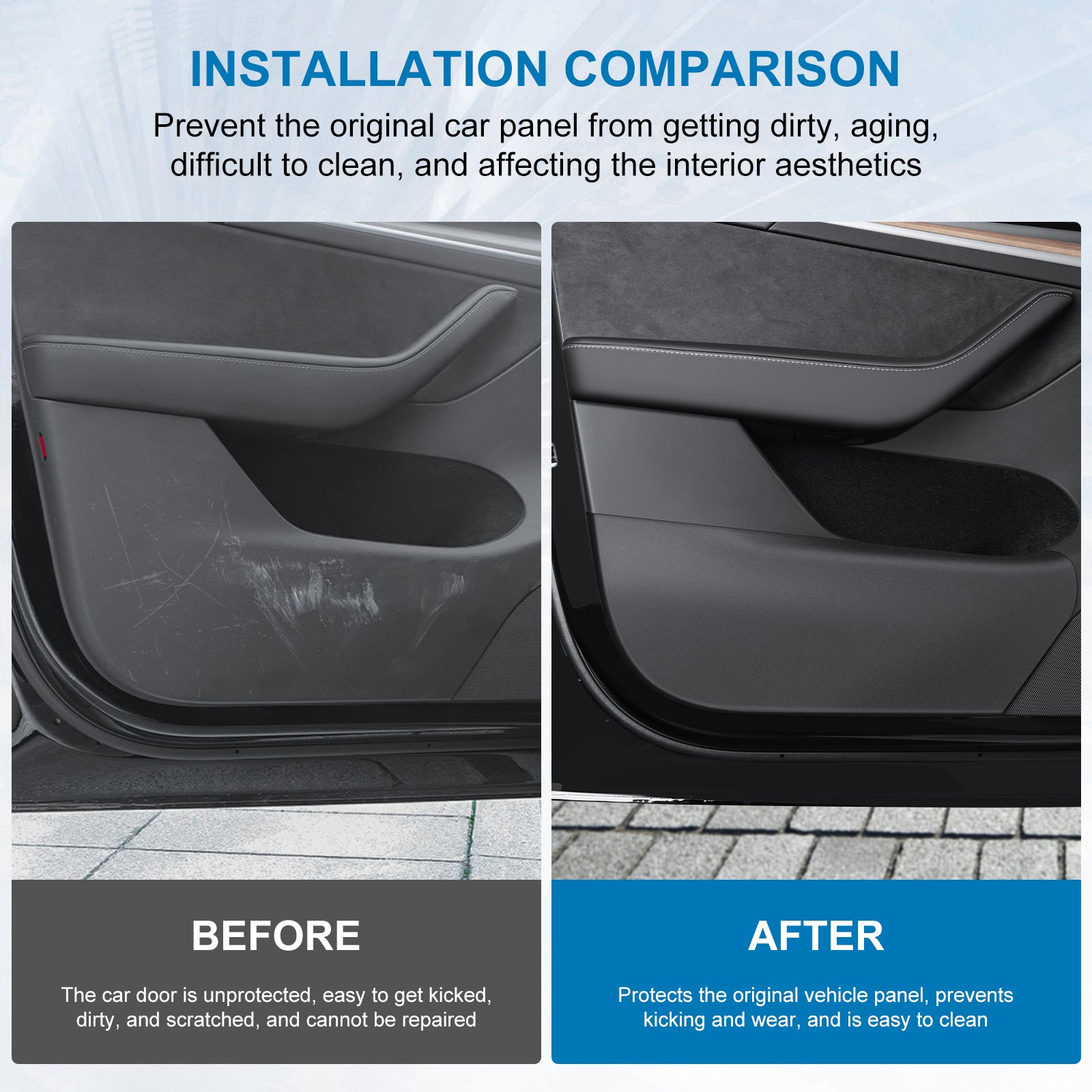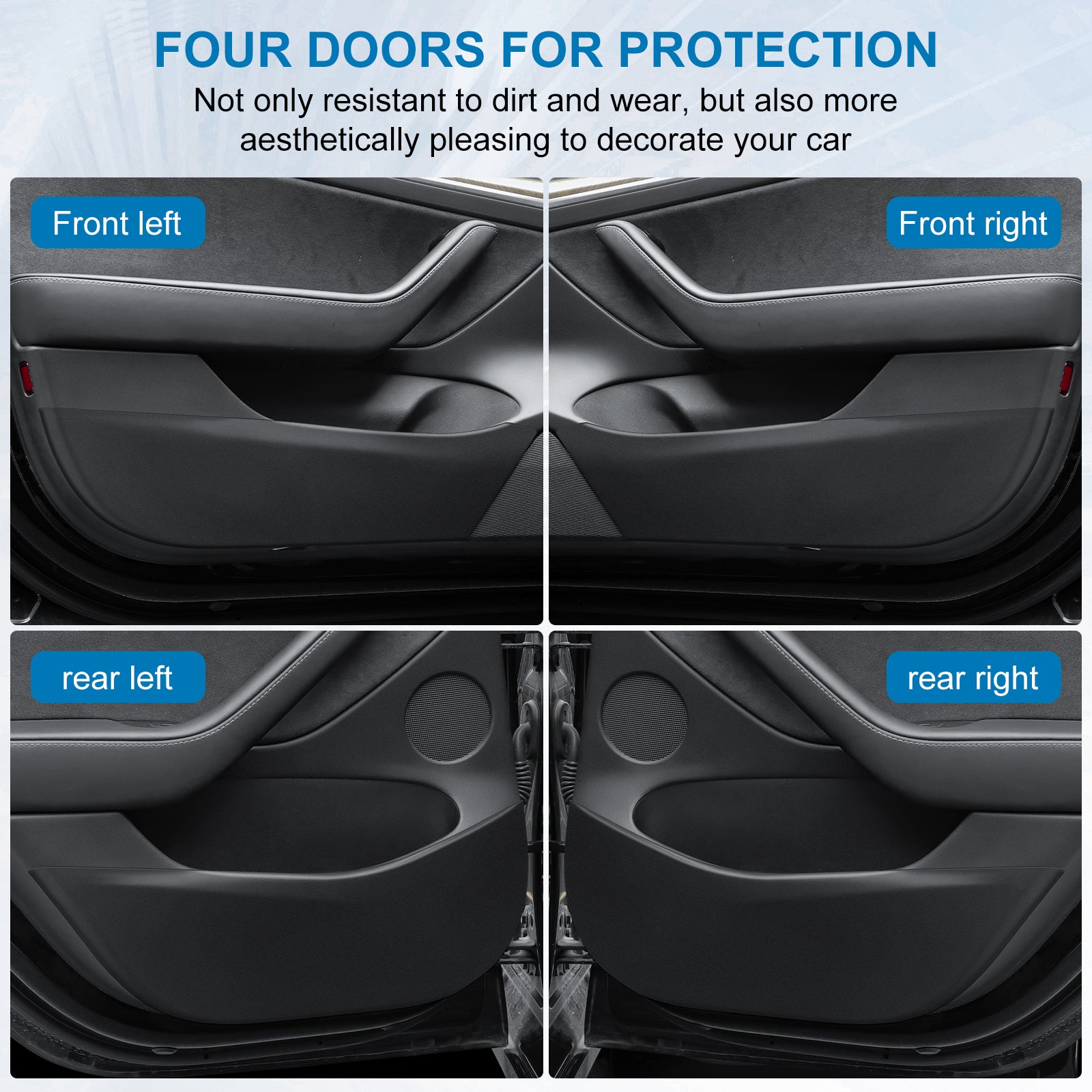 Specifically Designed for Tesla: 4PCS car door anti-kick pad for Tesla Model Y , fits snugly to the original car, which can protect the door edges perfectly.