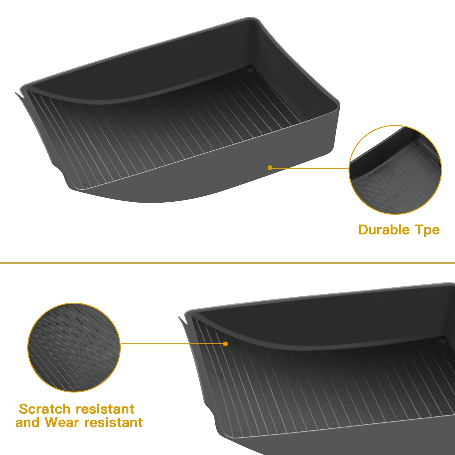- The model y center console organizer is made of quality TPE material, which can be waterproof, easy-clean, anti-slip, anti-vibration, anti-scratch, and protect your armrest box.