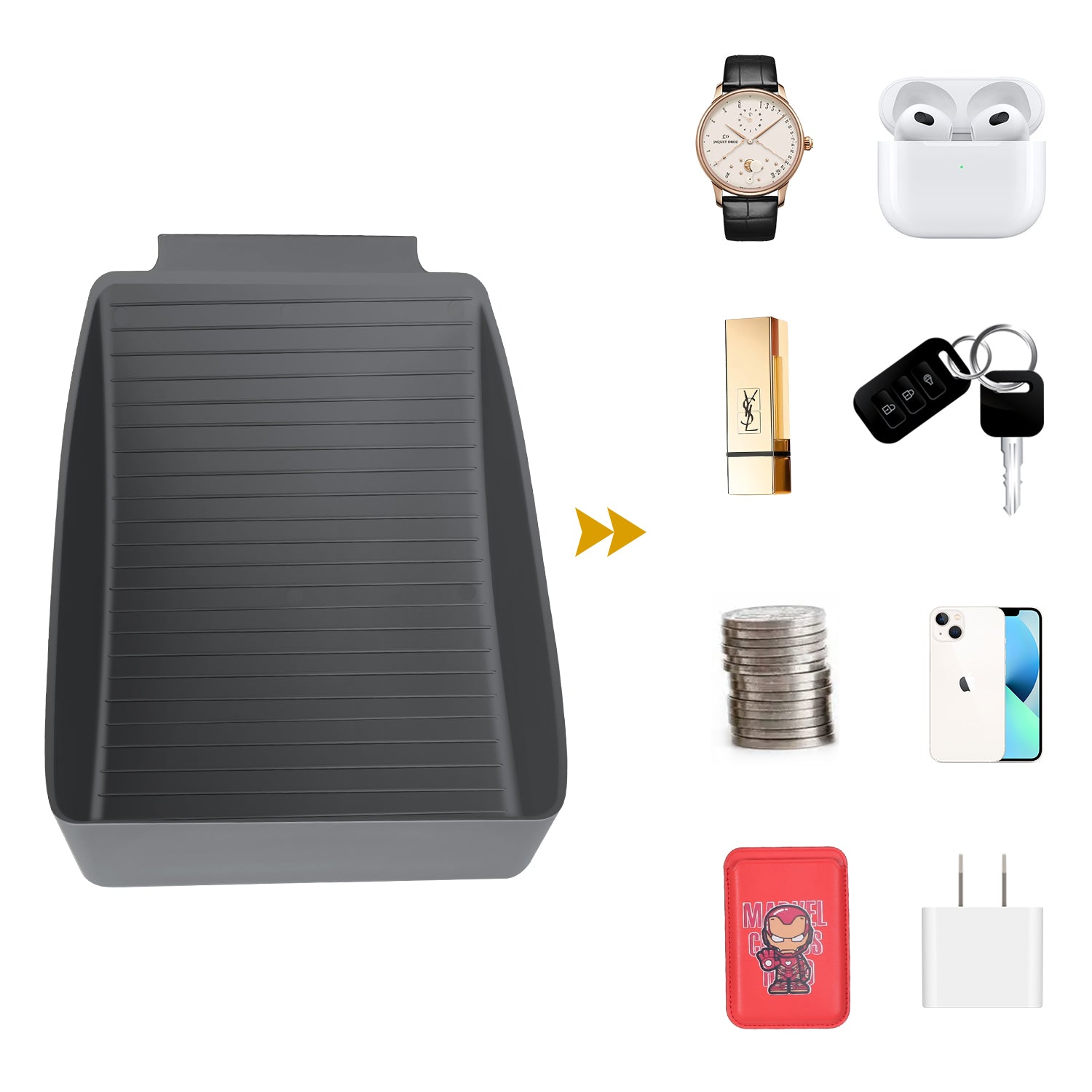 - This tesla model 3 organizer pad can store many small items. Such as tissue, bank cards, driver's licenses, coins, glasses, cash, keys, lipsticks, etc. Make your car tidy.
