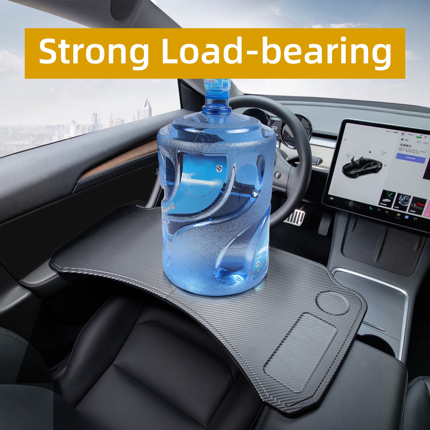 【Quality Material】The model 3/Y table is made of Bamboo, which is durable and stable. It is ideal for car travel telecommuting and leisure use. Convenient place your laptop, iPad, or food.