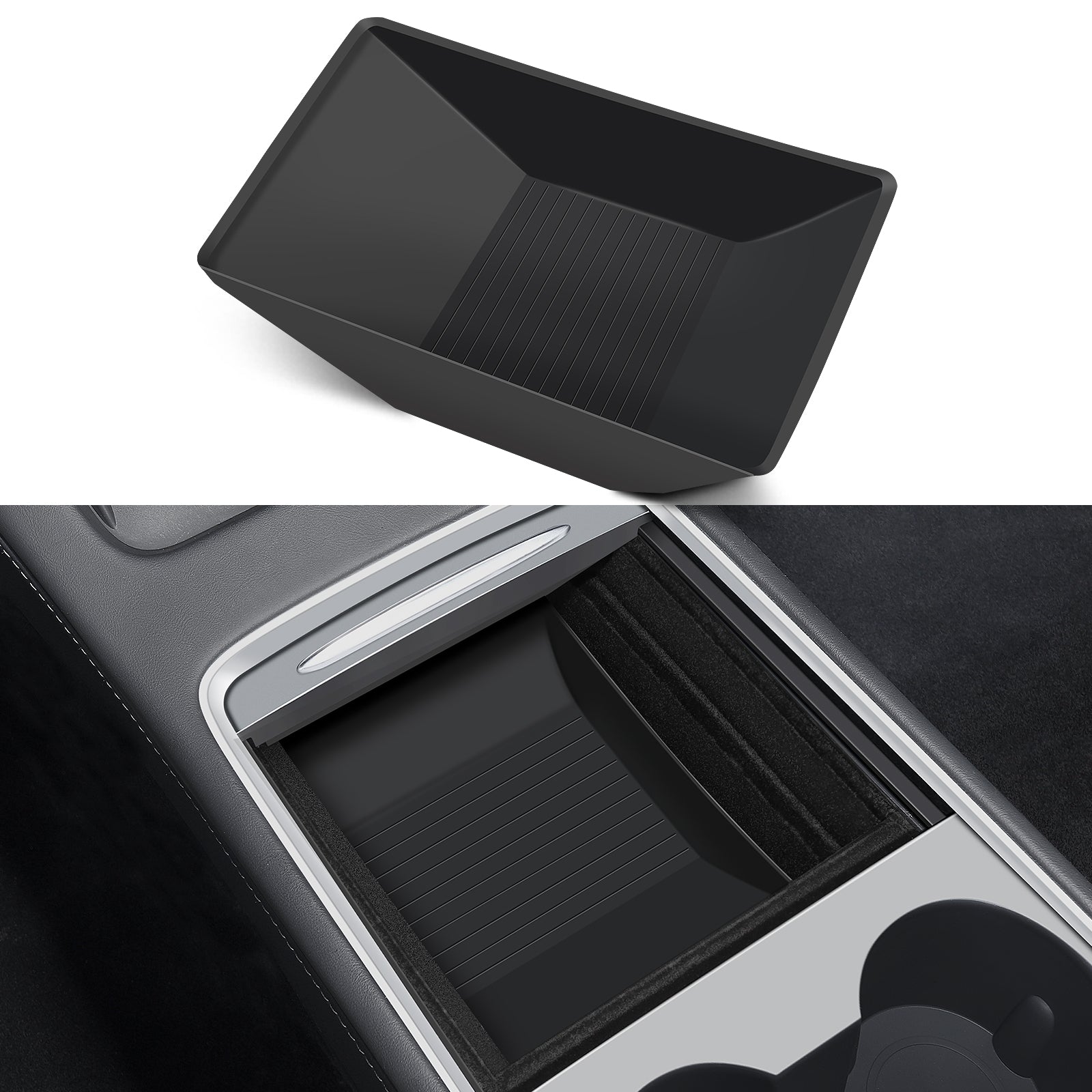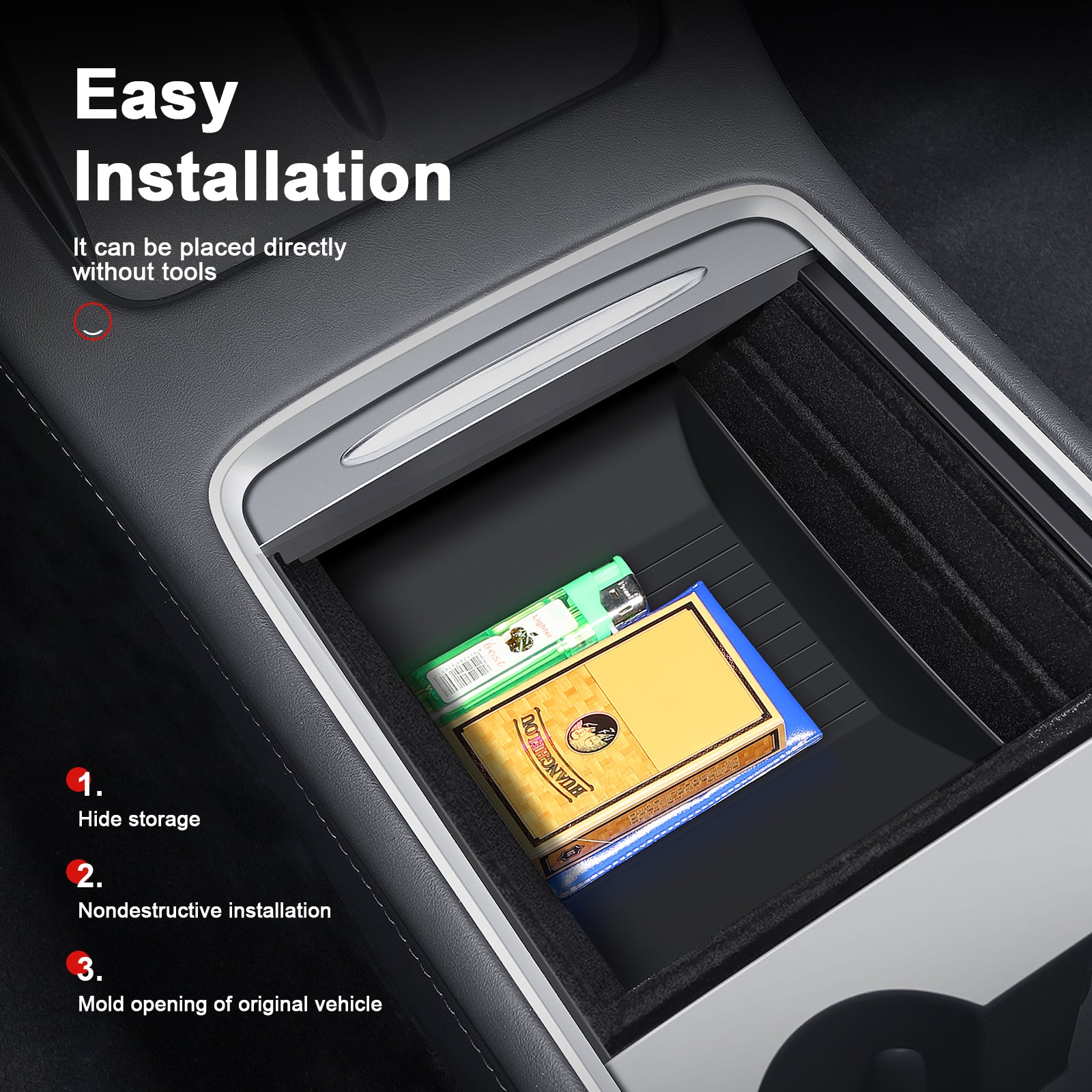 - Premium Quality Materials: Tesla Model 3/Y Console Organizer is made of TPE, the armrest hidden storage is high temperature resistant, drop resistant, no discoloration, and durable. Prevent items from sliding around in the tray, and reduce noise.