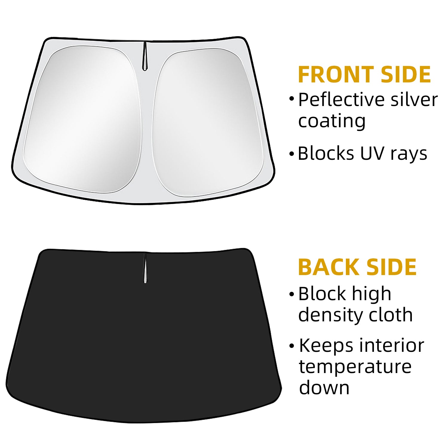 - 【Protect your car interior】Windshield sunshade provides high-quality and durable sun protection to maintain your vehicle's interior temperature. Your vehicle's seats, dashboard, steering wheel, and other LCD devices will stay cool and protected from the sun's rays.