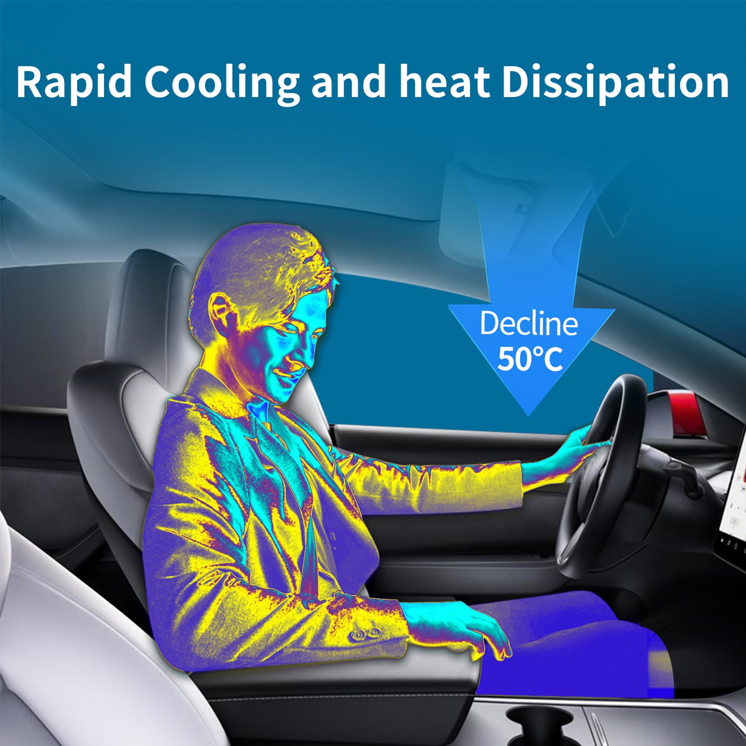 - 【Keep Cool】Designed with a silver coating to reflect heat and reduce heat buildup up to 40°F, it will block 99% of damaging UV rays. Keeps your interior cool and helps protect leather seats from cracking and fading.