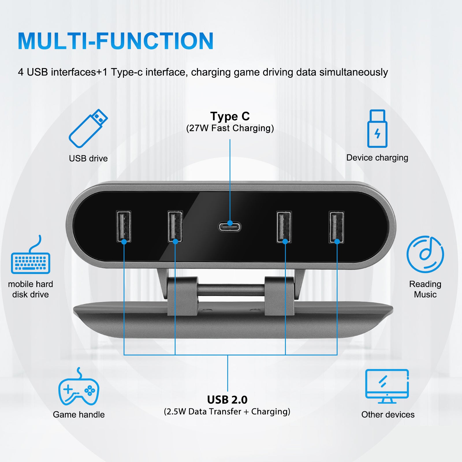 【Essential Tesla Accessory】This USB LED hub is an accessory built specifically for the 2021-2025 Tesla Y and 2017-2023 Model 3, with 1 C-type port and 4 USB ports. One of the C-type ports supports 27W fast charging.