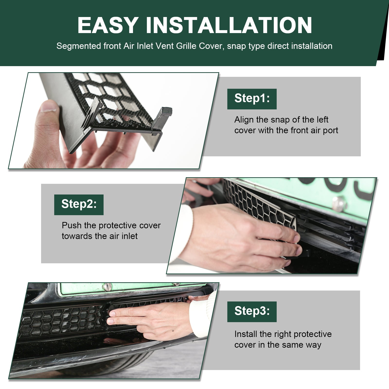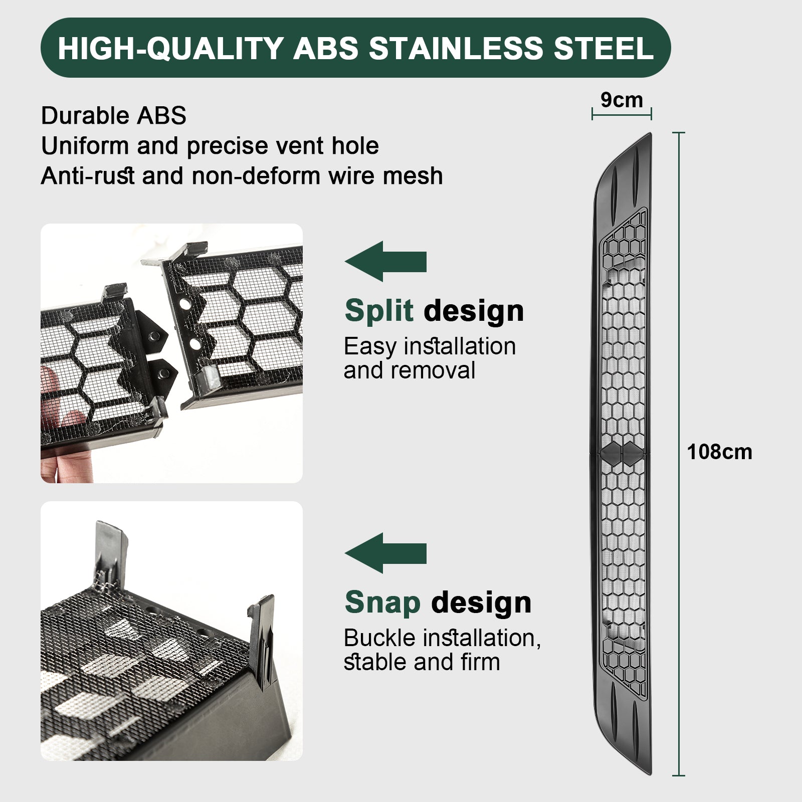 - The air inlet vent grille cover is made of premium PP plastic and stainless steel wire mesh, tough, durable, and not deformed. excellent sealing, blocking the debris, and providing full protection for your car.