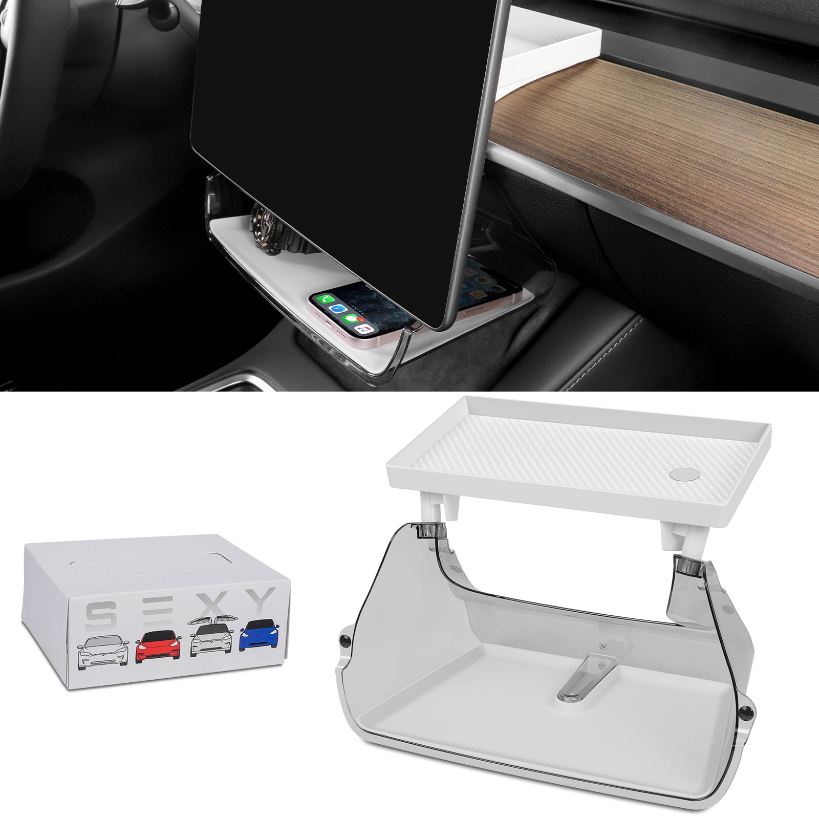 - Under screen box for 2021-2023 Tesla model 3 model Y is made of high-quality acrylic material which is sturdy and durable.