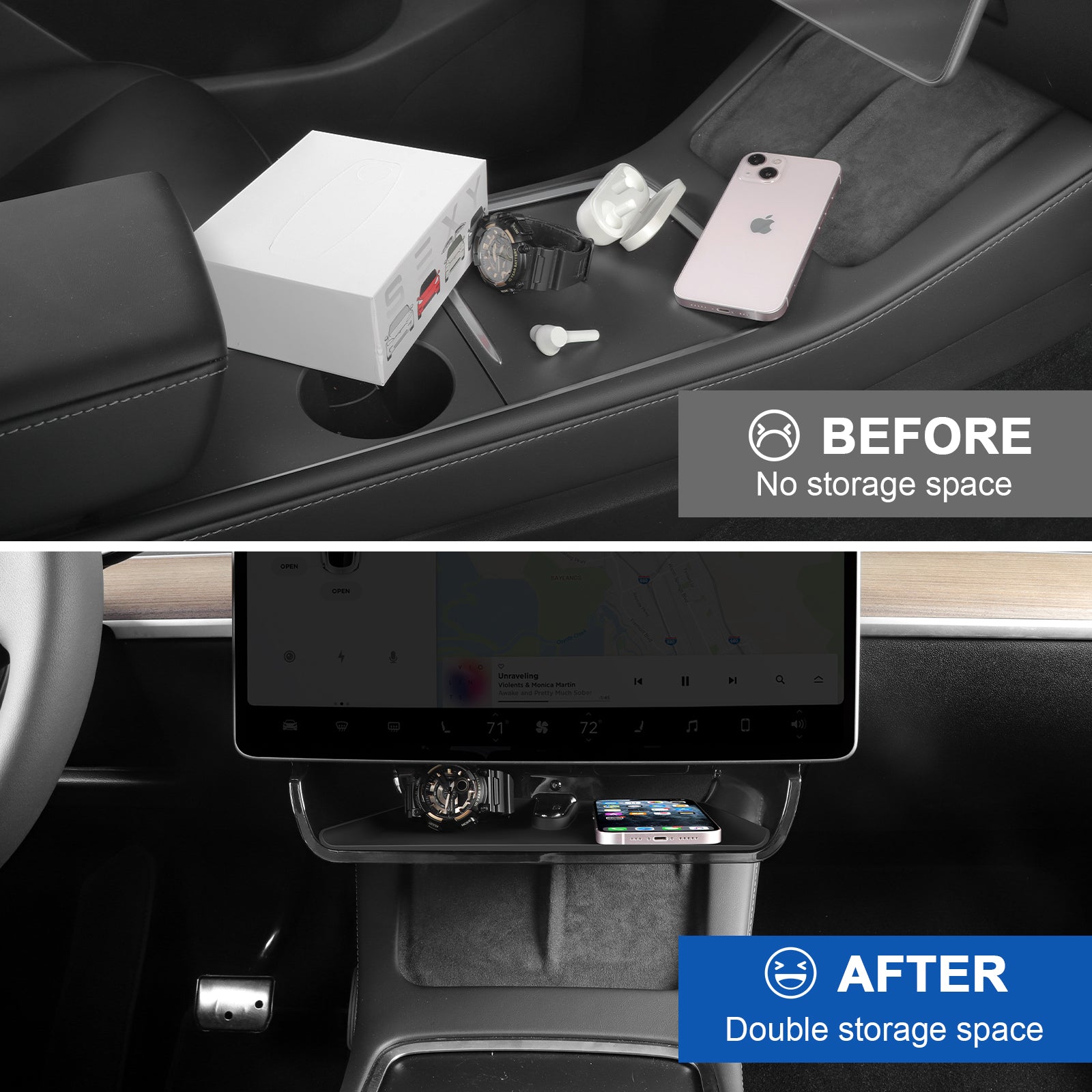 - Upgrade 2017-2023 Tesla Model Y & Model 3 Tesla console organizer,Perfectly fit the original car.