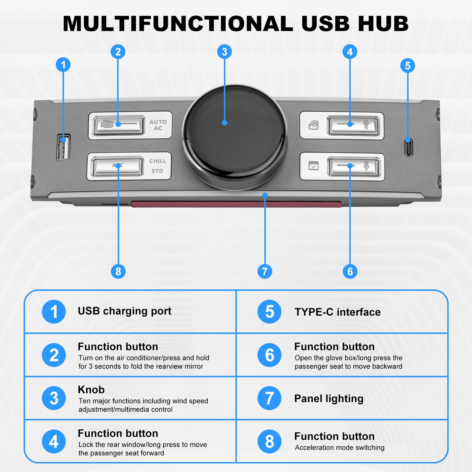 - Compatible with Tesla Model 3/Y: This multi-port USB hub center console cover is specially designed for Tesla 2021/2022/2023/2024 Model 3 and Model Y, highly fits your center control panel, does not affect the center control opening and closing, It does not affect the normal use of the storage box you added.