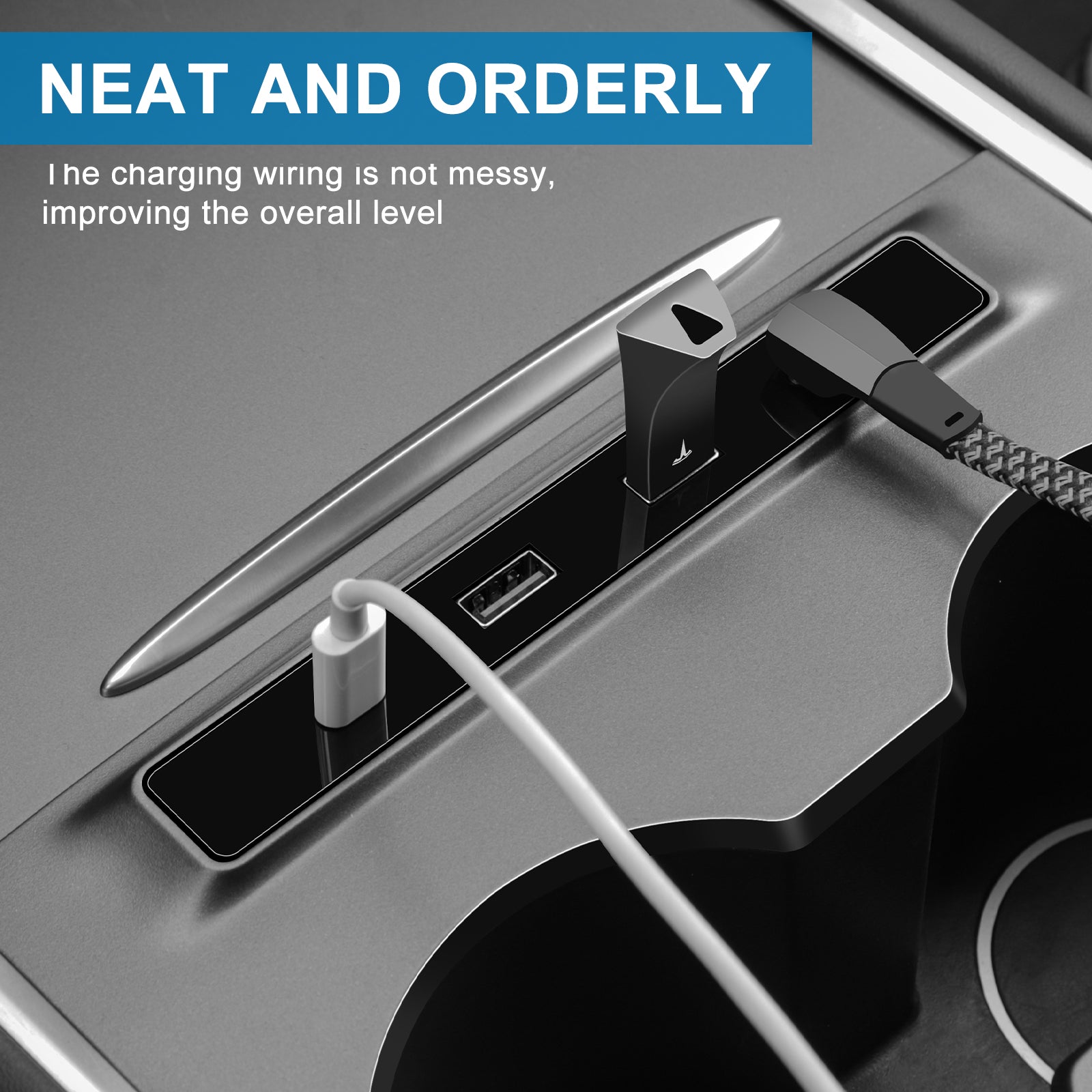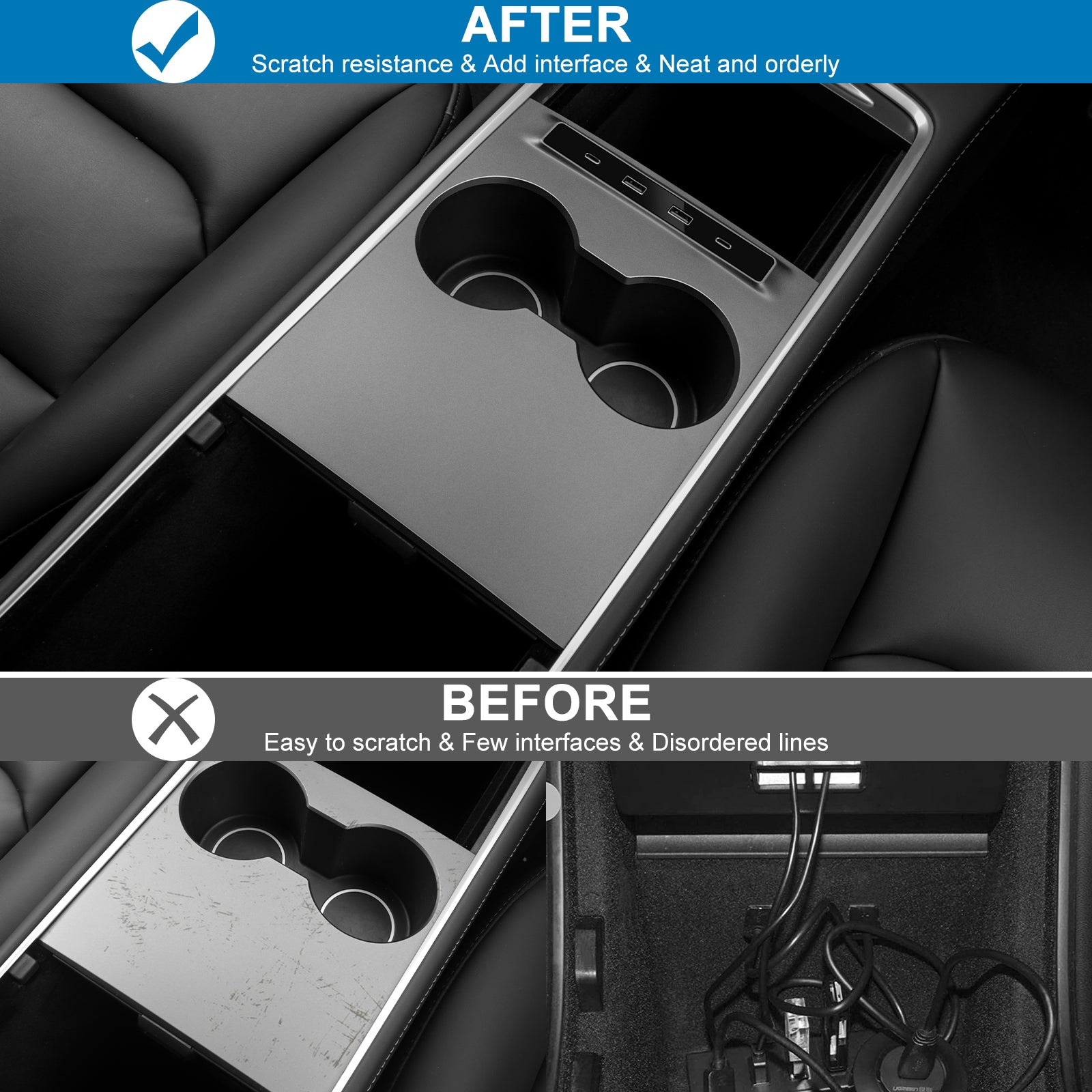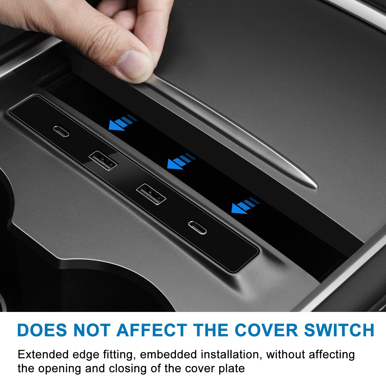 - This multi-port USB hub center console cover is specially designed for Tesla 2021/2022/2023 Model 3 and Model Y, highly fits your center control panel, does not affect the center control opening and closing, It does not affect the normal use of the storage box you added.