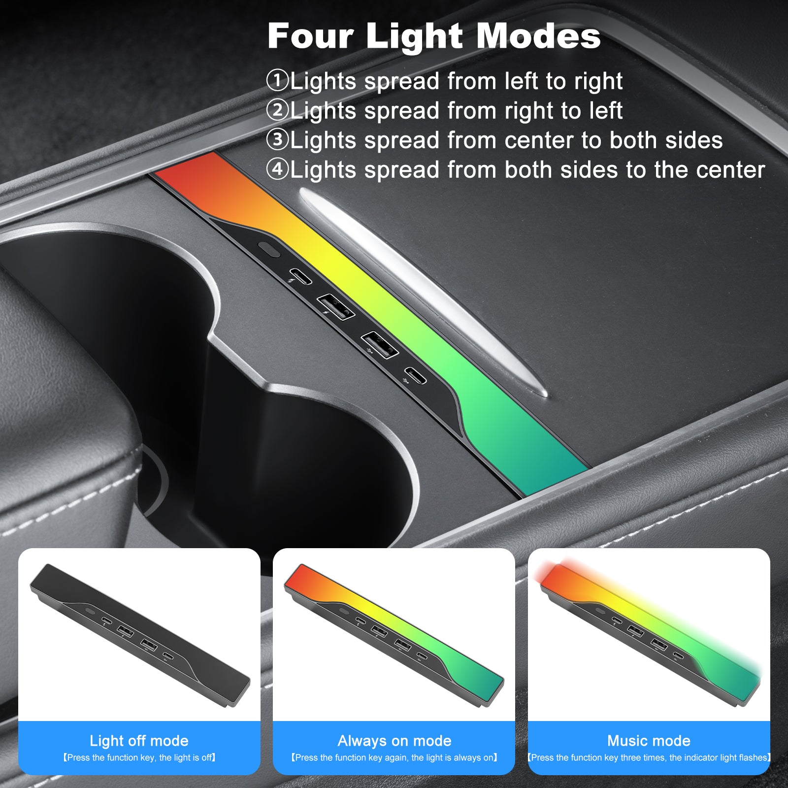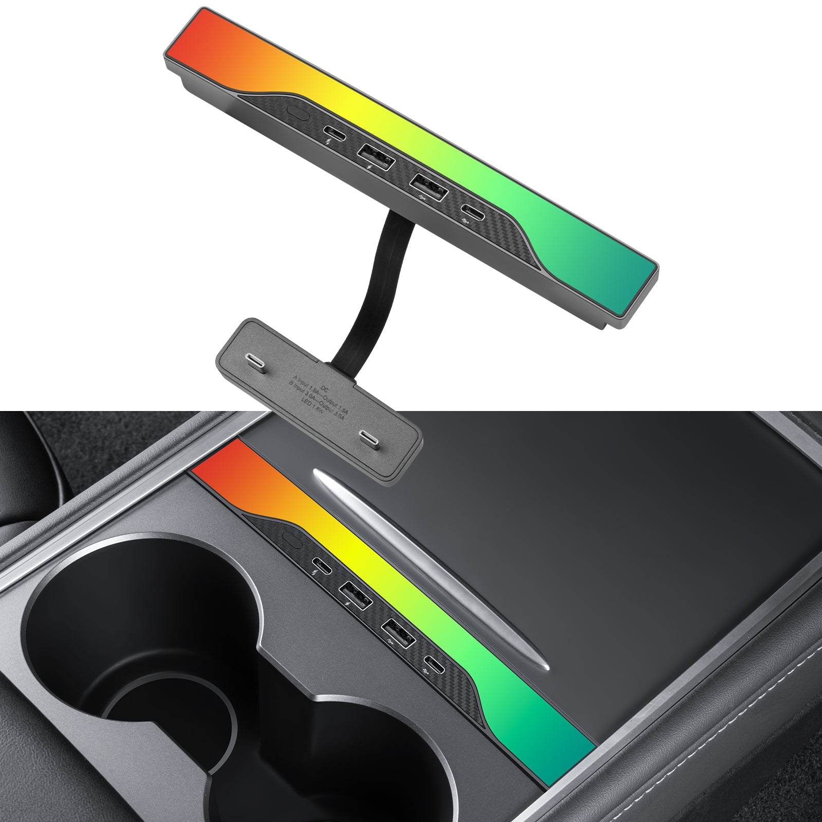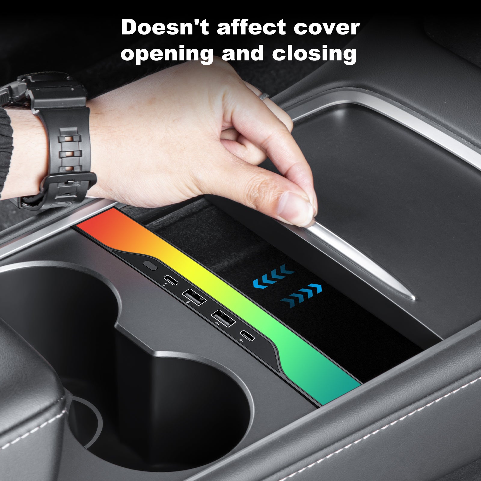 - Compatible with Tesla Model 3/Y: This multi-port USB hub center console cover is specially designed for Tesla 2021/2022/2023 Model 3 and Model Y, highly fits your center control panel, does not affect the center control opening and closing, It does not affect the normal use of the storage box you added.