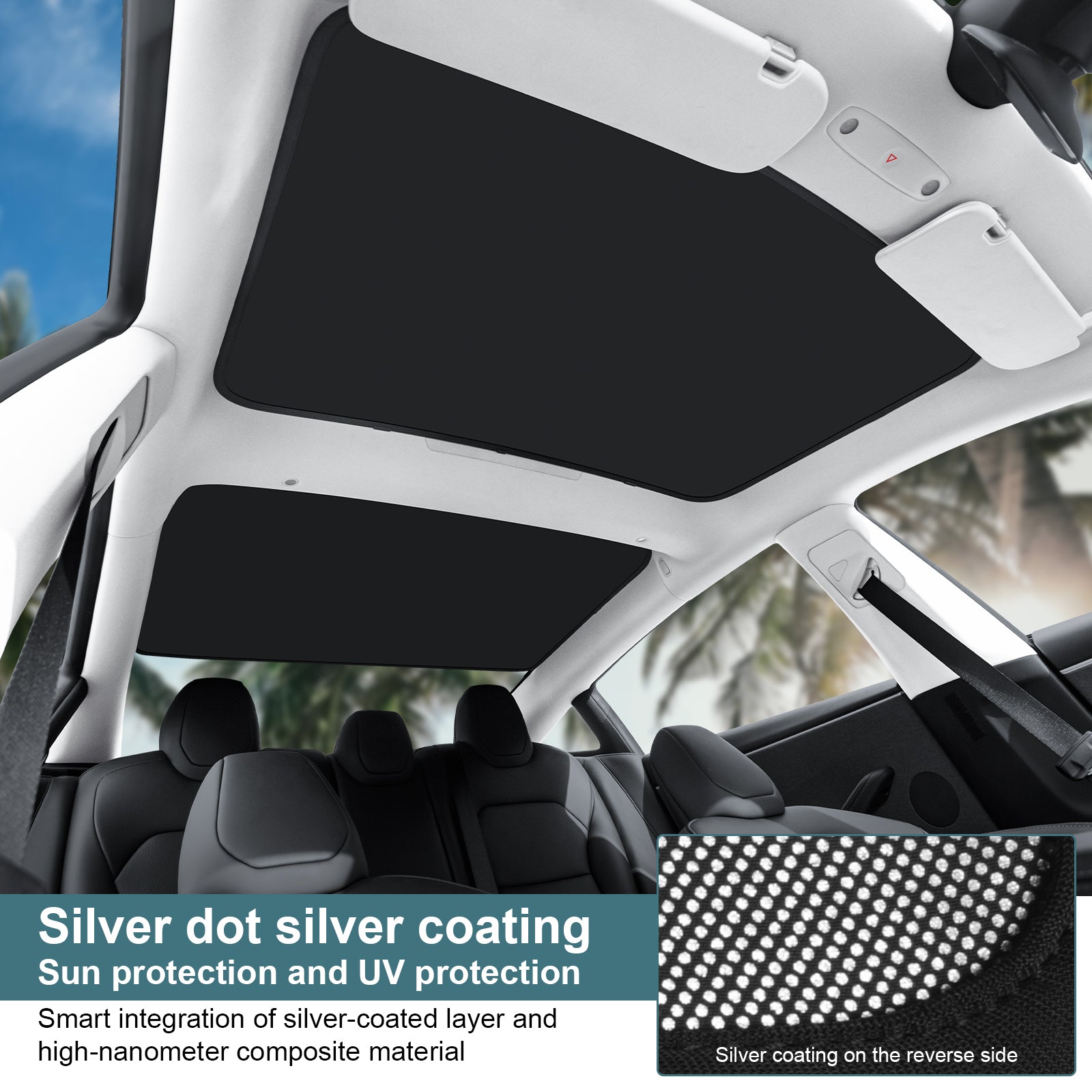 [Upgrade Material] Summer Premium nano ice silk. tesla model 3 accessories 2024 sunshade with the silver coated layer, sun shading and heat insulation, sun protection, and more UV protection, silver coated layer and nanocomposite materials clever integration. Sunlight reflection, isolate heat. According to our 1000+ Tesla owners' feedback to research and development launched, More in line with the needs of Tesla owners like you. No collapse close fit new sunroof.