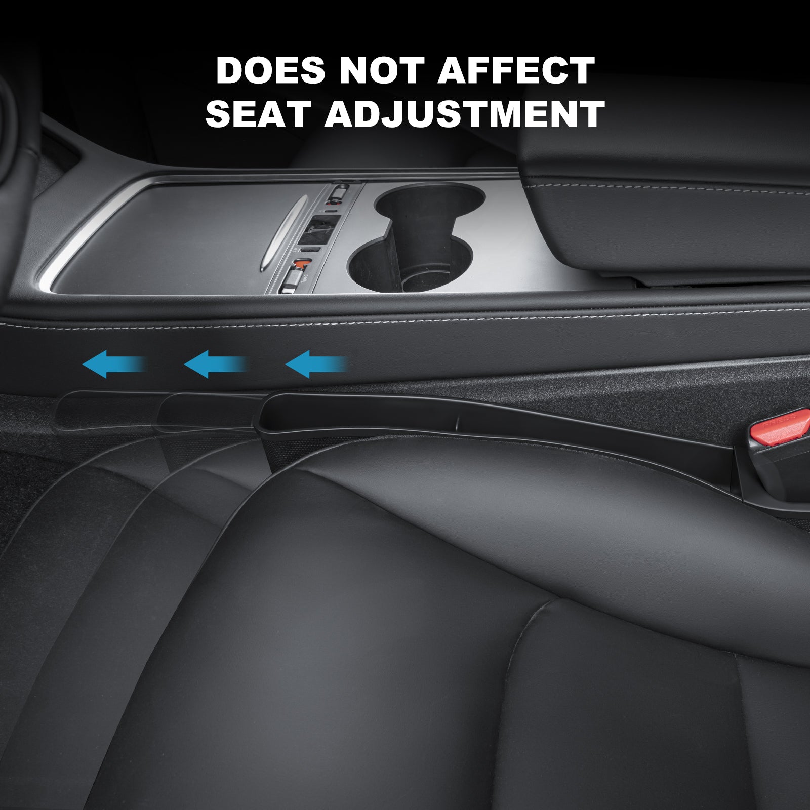 Barrier Gap: car seat gap filler organizer is designed for Tesla Model 3/Y, our seat gap filler organizer can cover 100% of the gap between the car seat and the center console, preventing small items such as cell phone keys from falling out from the middle of the seat gap.
