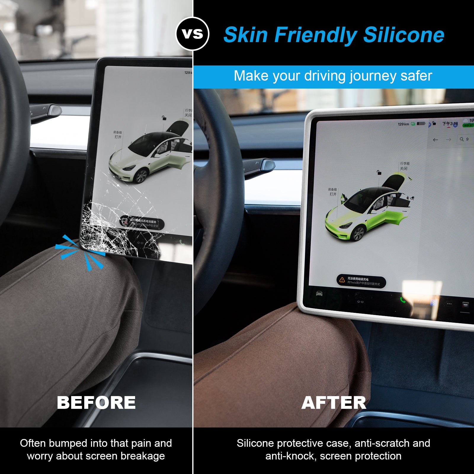 - [All-round protection] This Tesla screen protector frame improves your driving posture and prevents your knees from hitting the edges of the screen. Effectively protects your screen from shatter, oil and scratches, and makes no noise while driving.