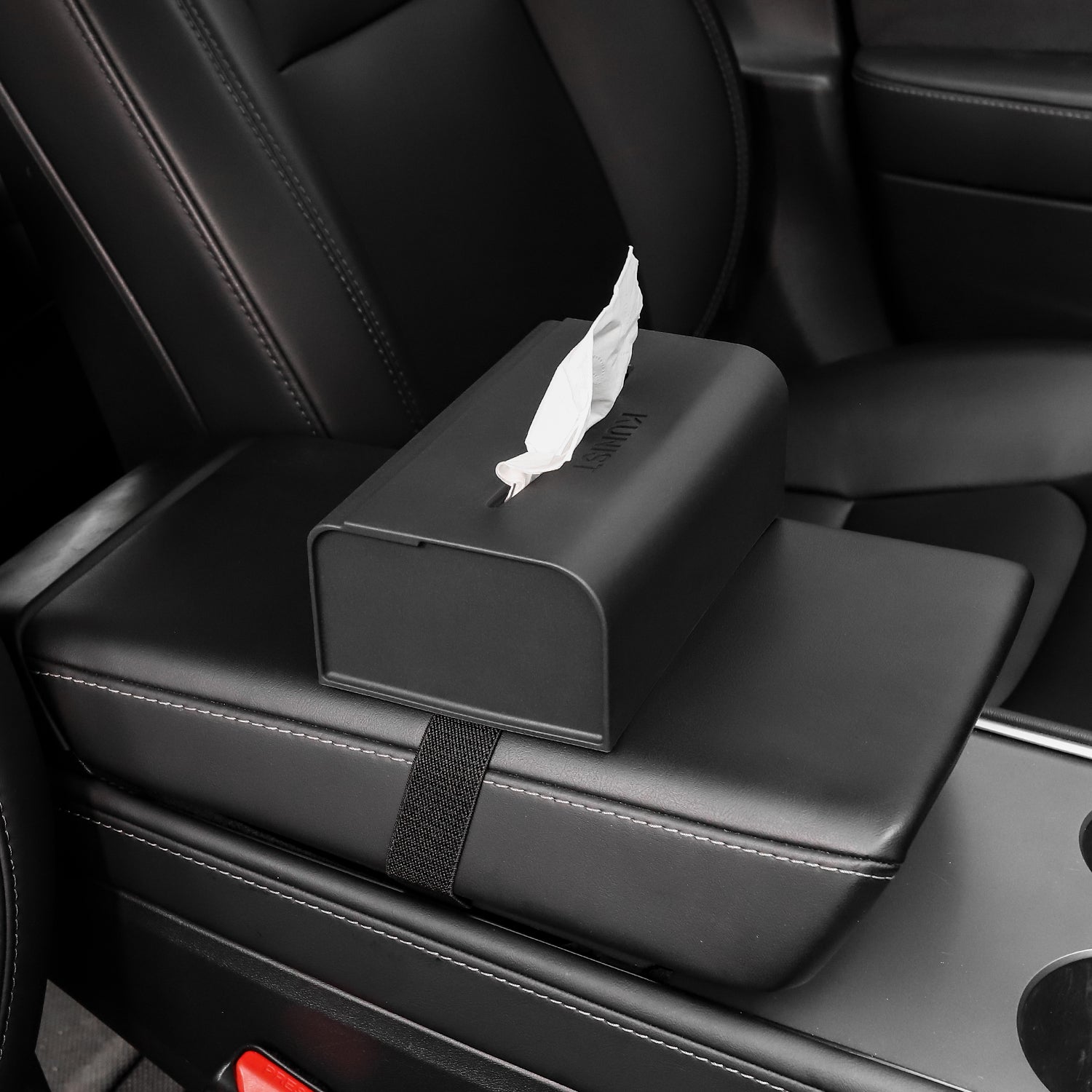 - The car tissue holder comes with an elastic band with a buckle on the back of the tissue holder. simple to fix, stable, anti-shake, and non-slip. Elastic bands are suitable for armrest boxes and seats of different sizes.