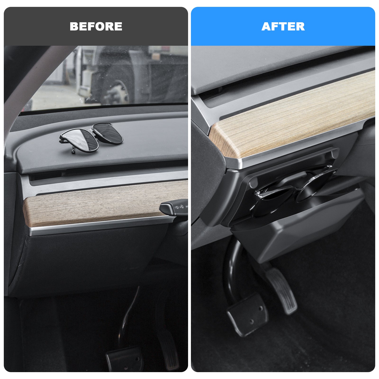 - Nondestructive Installation: the glasses organizer is designed with snap-on installation,which cleverly utilizes the structure around the dashboard to achieve quick and non-destructive installation without any disassembly steps.