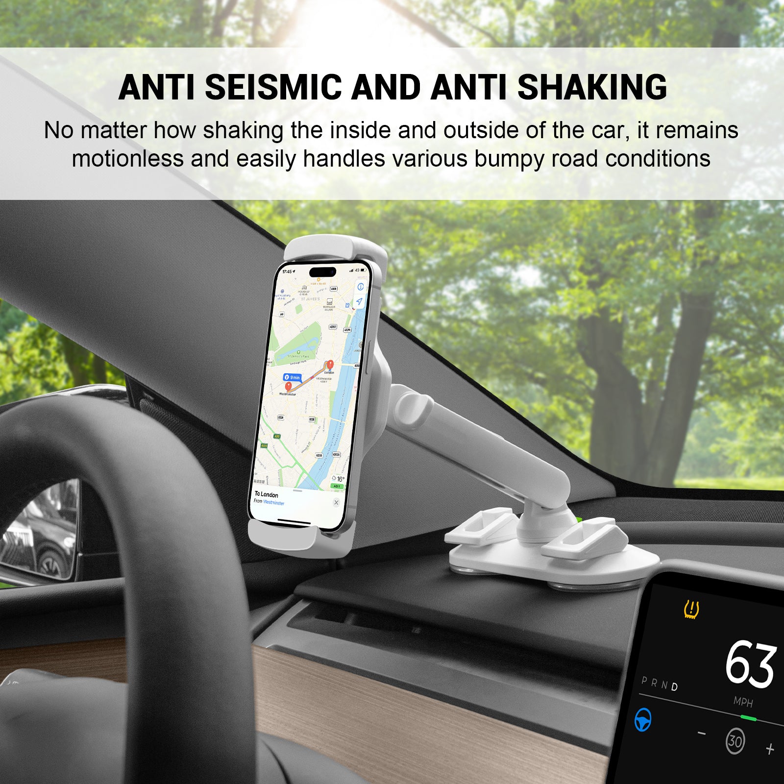 Enhanced Adhesive Suction Cup: Reusable gel pads remain stable on any flat or curved portion of the dashboard and work well in hot and cold conditions. The sturdy suction cups lock securely to the windscreen or dashboard, keeping your smartphone safe and sound while you take calls and check navigation instructions.