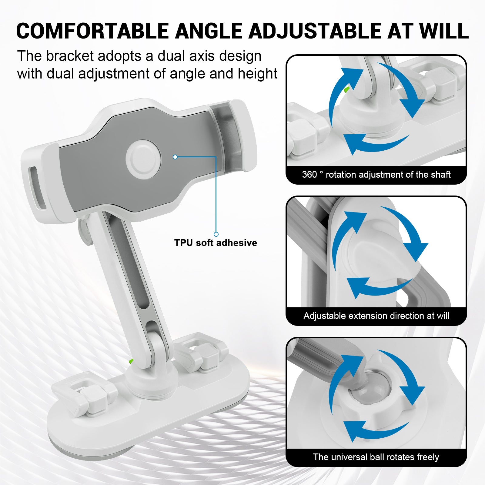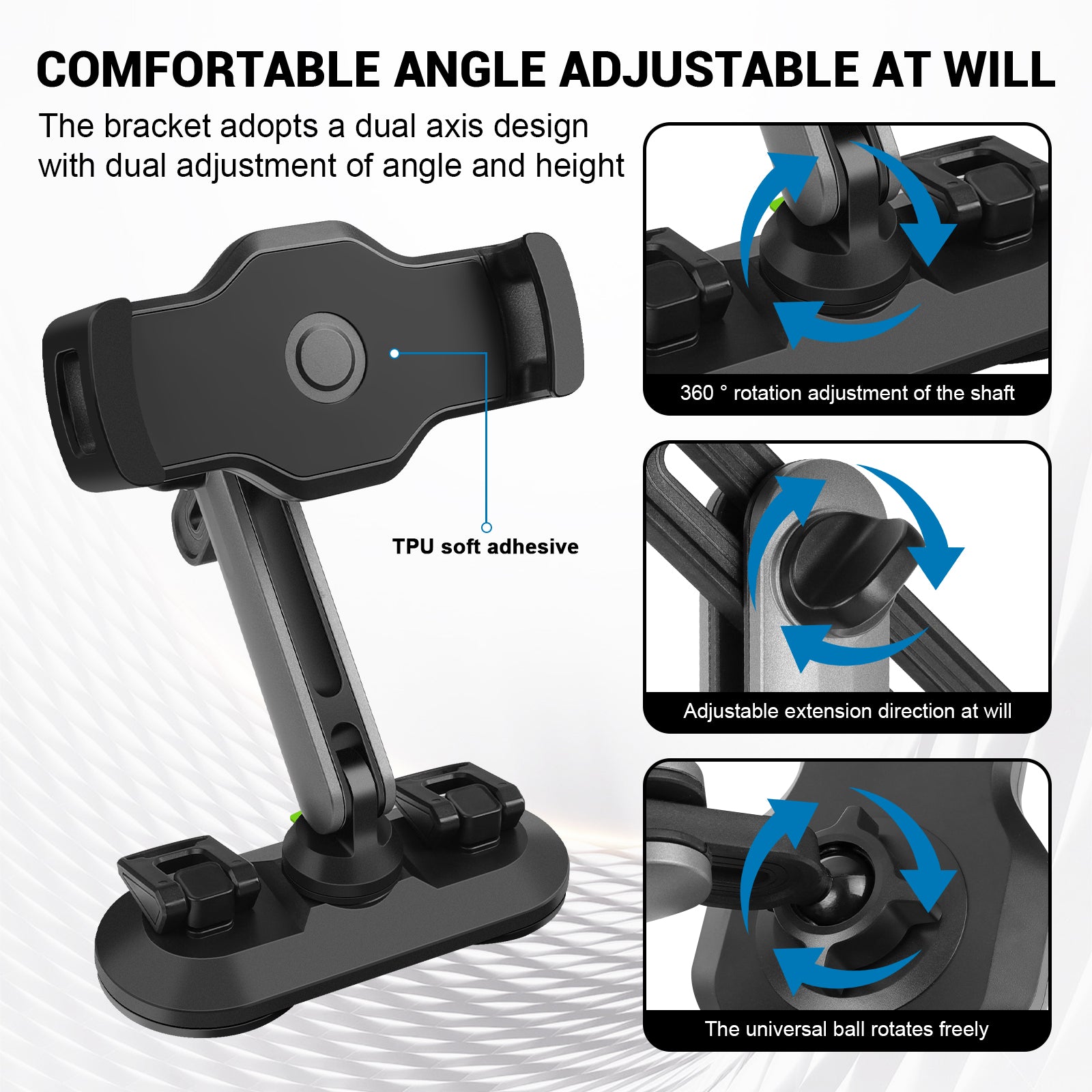 Perfect Flexibility: The 360-degree swivel ball joint gives you the freedom to adjust the viewing angle to your liking and comfort. You can adjust your phone to any angle without blocking your view. With the telescopic arm, the arm length can be extended from 4.2 inches to 5.8 inches. It is easy to adjust the distance between you and the stand.