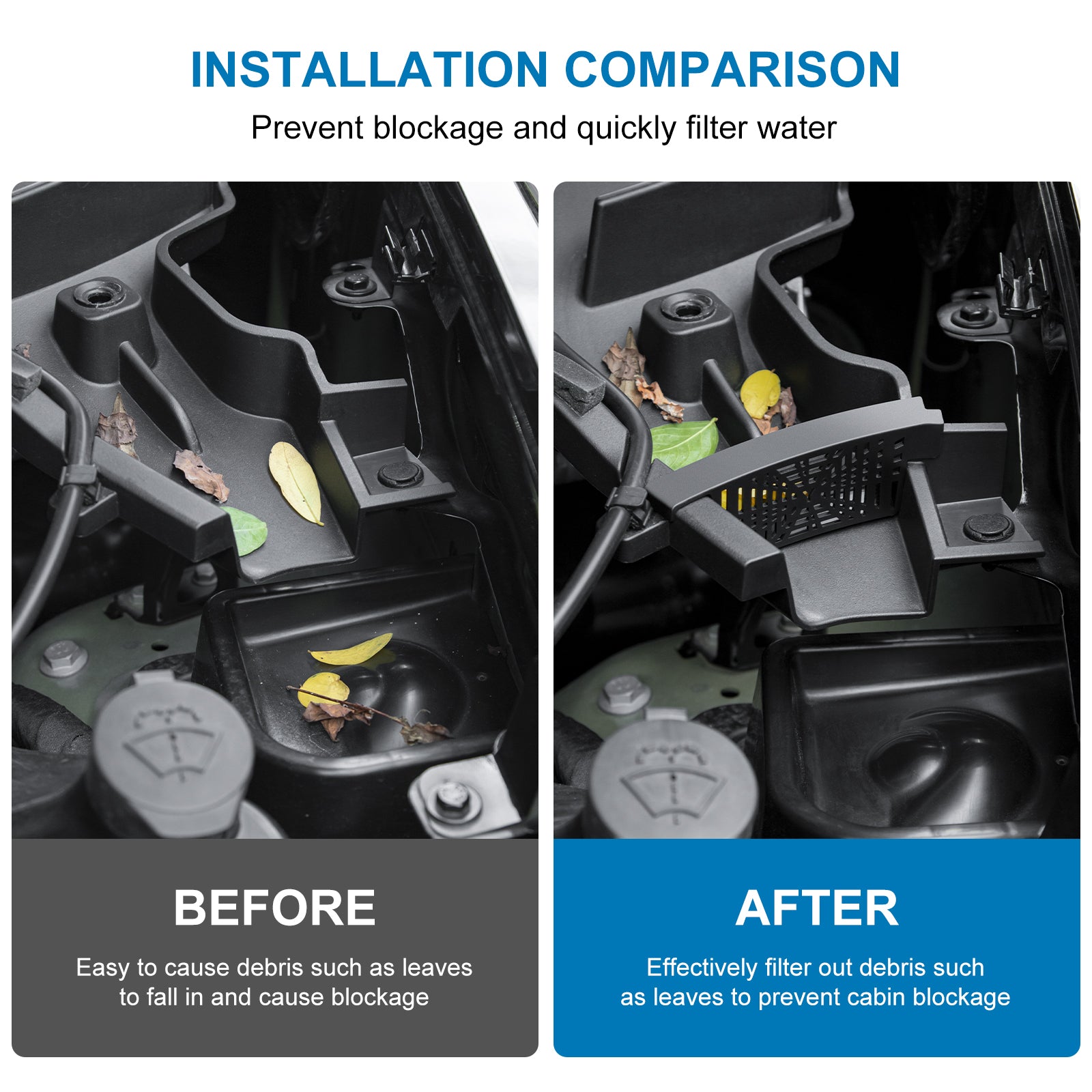 - The bottom leakage hole is even, which does not affect the ventilation effect of the original vehicle, Effectively filter impurities to prevent blockage, and keeps the vehicle clean.