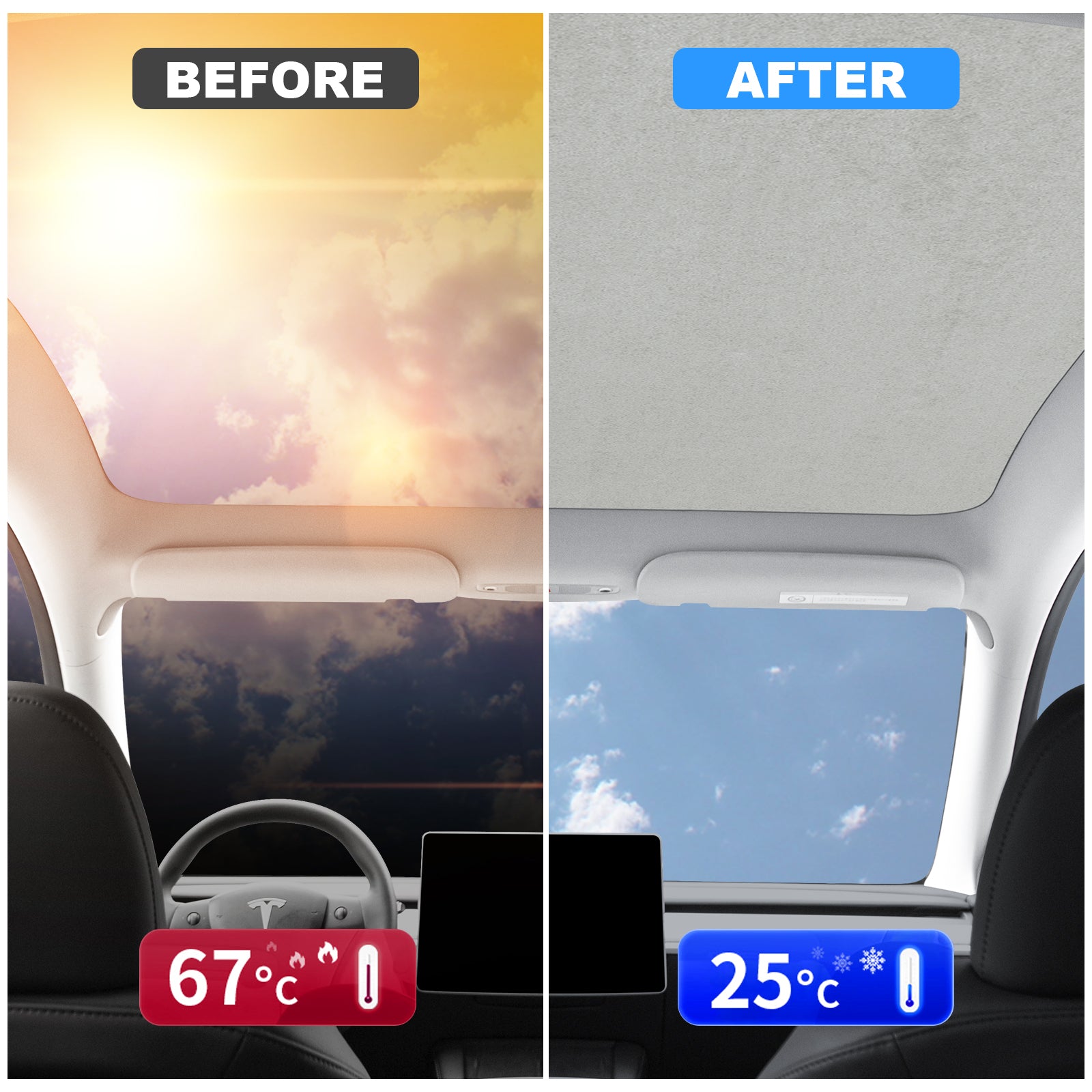 [Upgrade Material] Soft suede material+Summer Premium nano ice silk. 2024 model 3 sunshade with the silver coated layer, sun shading and heat insulation, sun protection, and more UV protection, silver coated layer and nanocomposite materials clever integration. Sunlight reflection, isolate heat. According to our 1000+ Tesla owners' feedback to research and development launched, More in line with the needs of Tesla owners like you. No collapse close fit new sunroof.