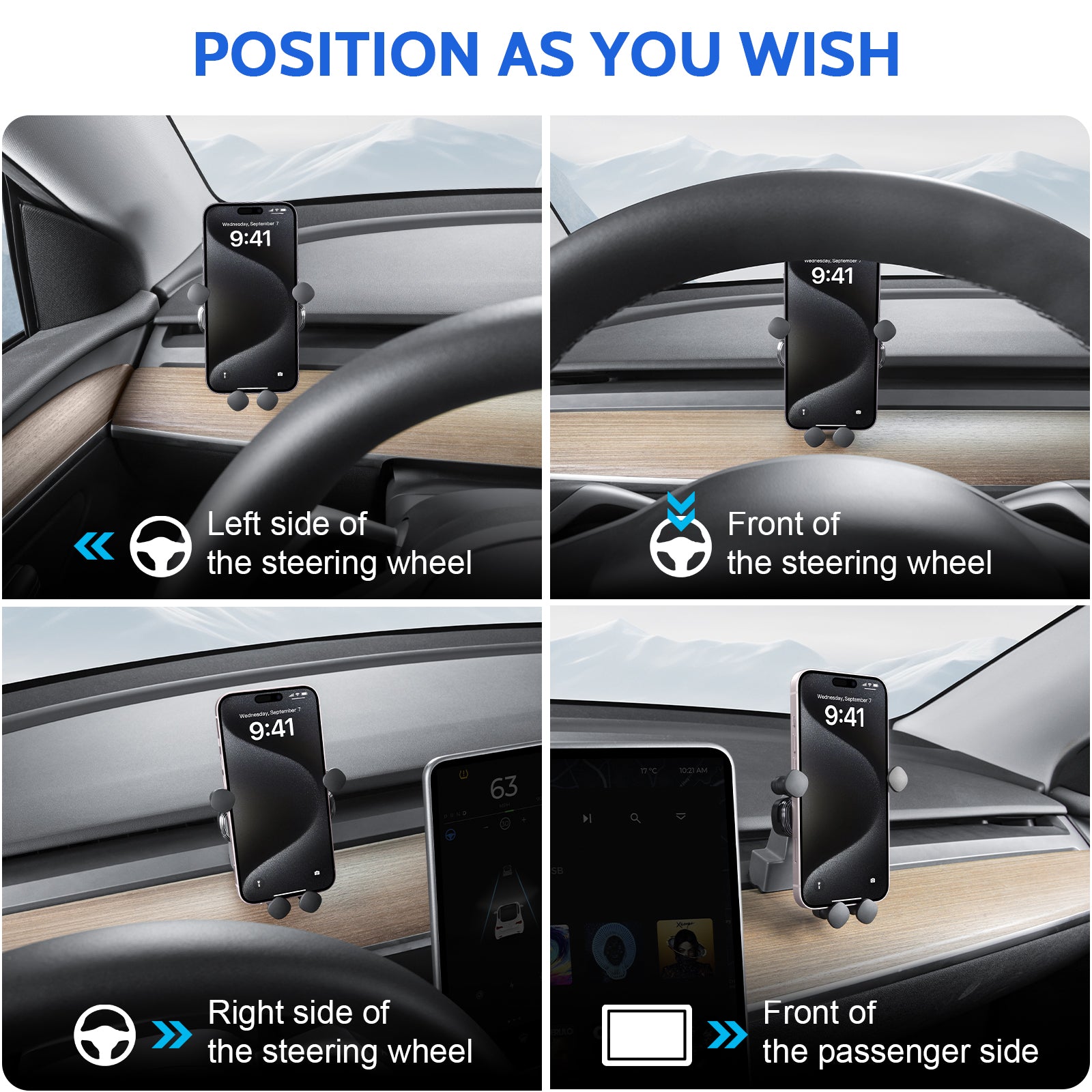 - Perfect Match for Tesla: Crafted exclusively for Tesla cars, our car phone mounts are designed to complement the sleek and modern aesthetics of the car, ensuring a perfect fit with Tesla's unique interior.